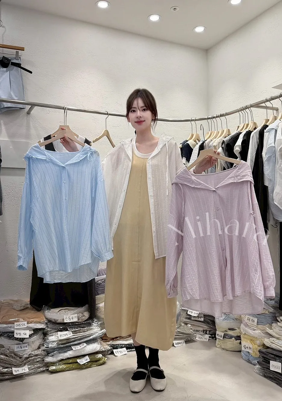 A54 0414甜甜家細直紋連帽襯衫外套3色