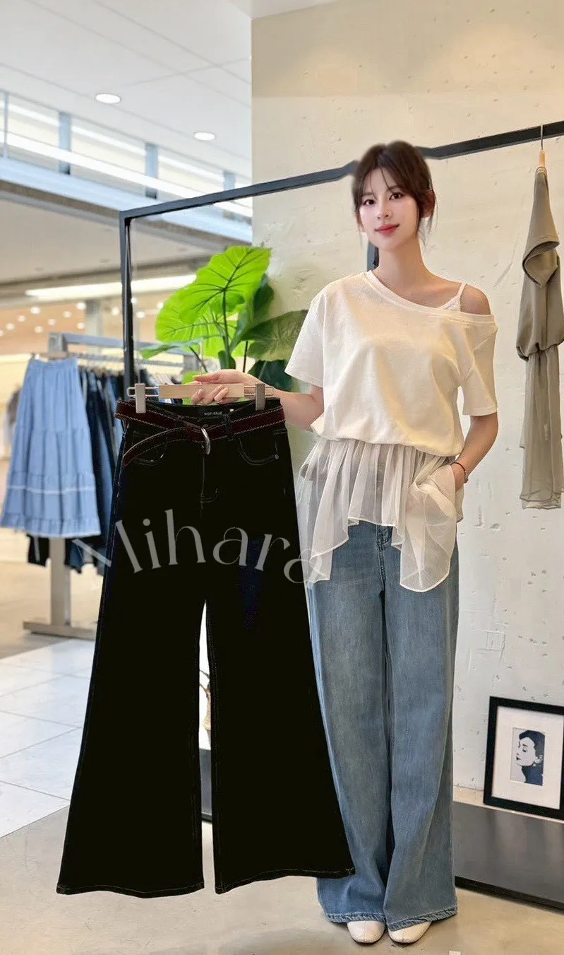 A58 0414CP外套家直筒牛仔褲附腰帶2色(S/M/L)