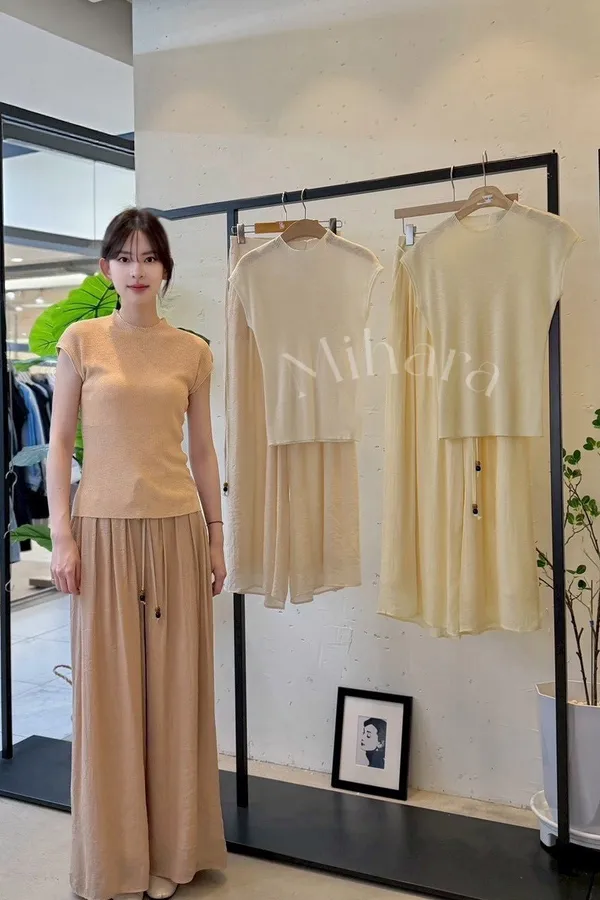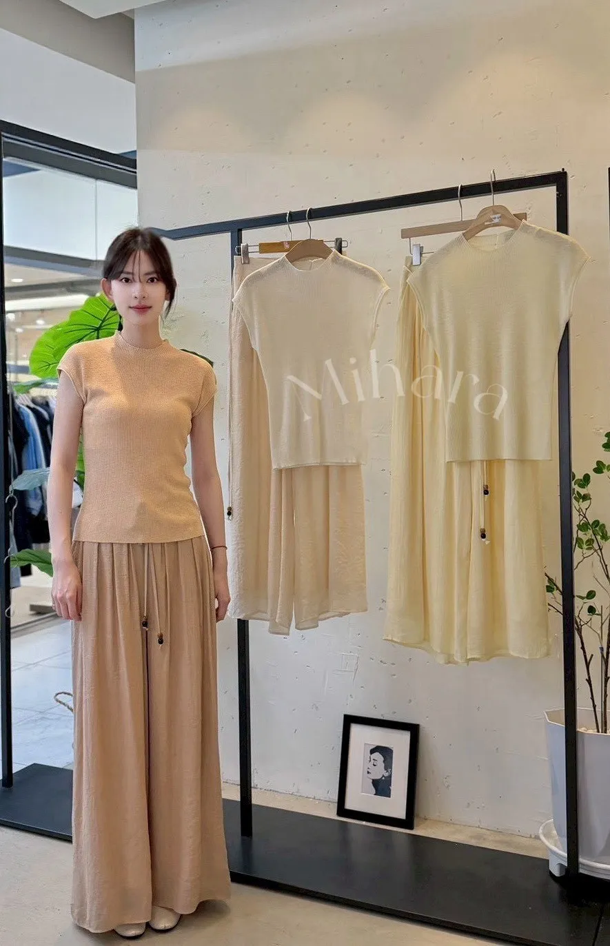A69 0414CP外套家圓領針織衫+抓褶寬褲(SET)3色