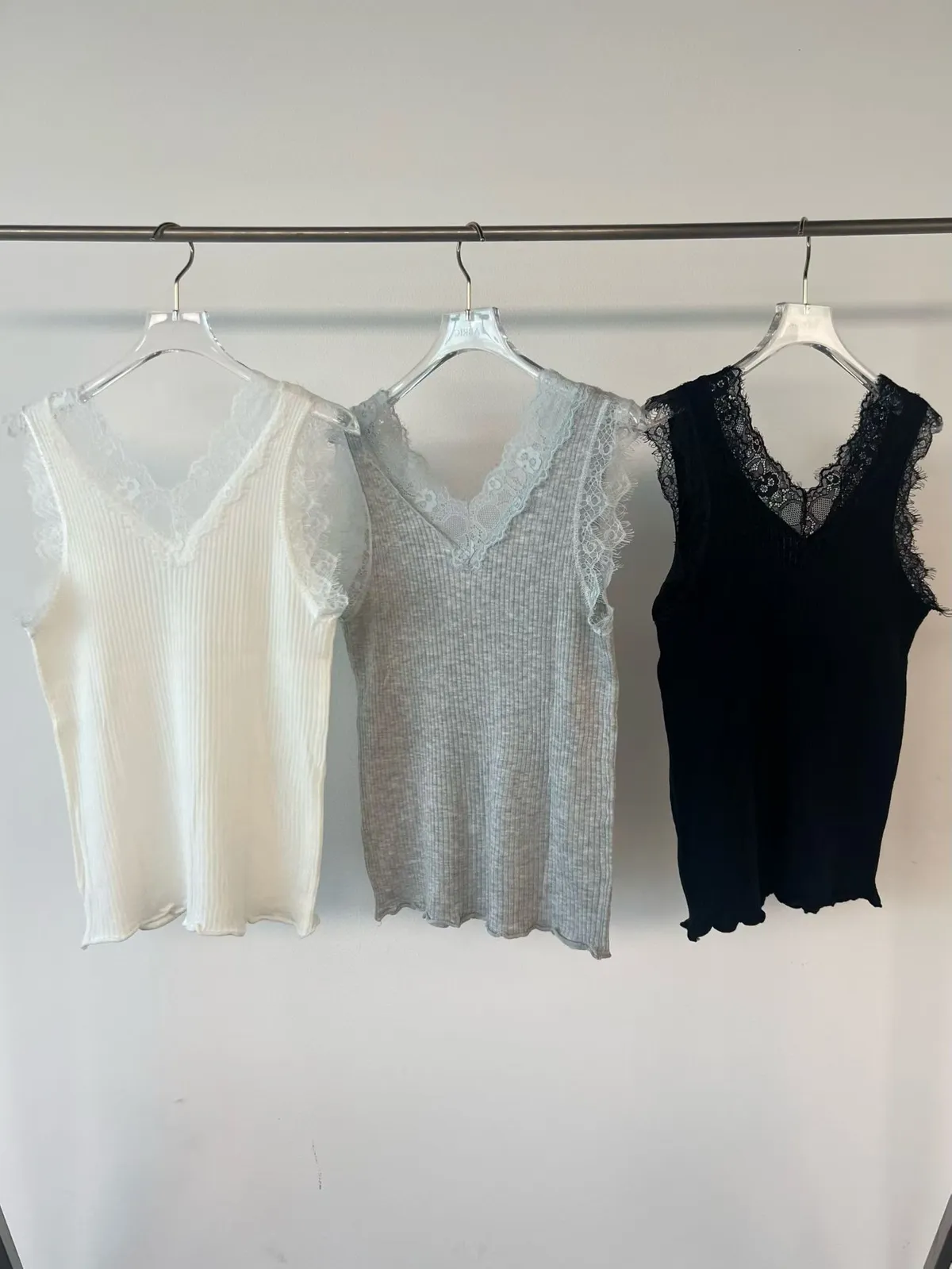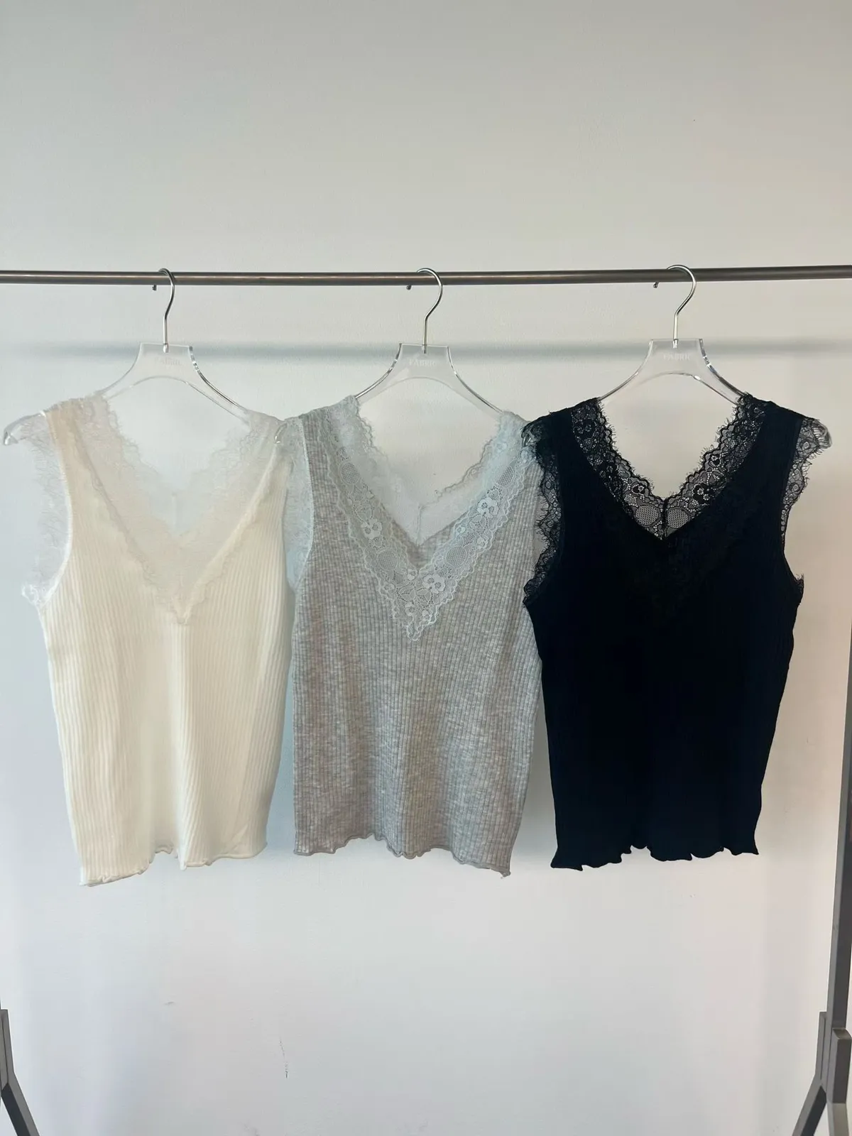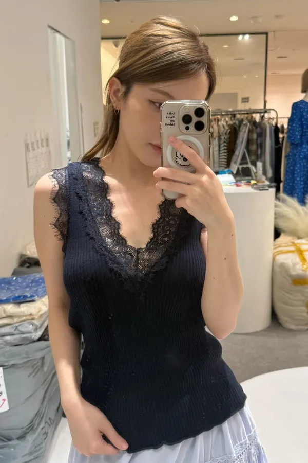 A1 0416美美設計家蕾絲V領坑條小背心3色