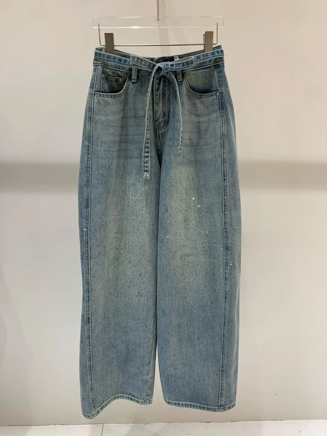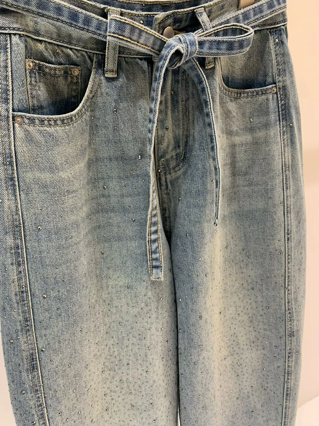 A5 0416美美設計家細鑽牛仔褲附綁帶(S/M/L)