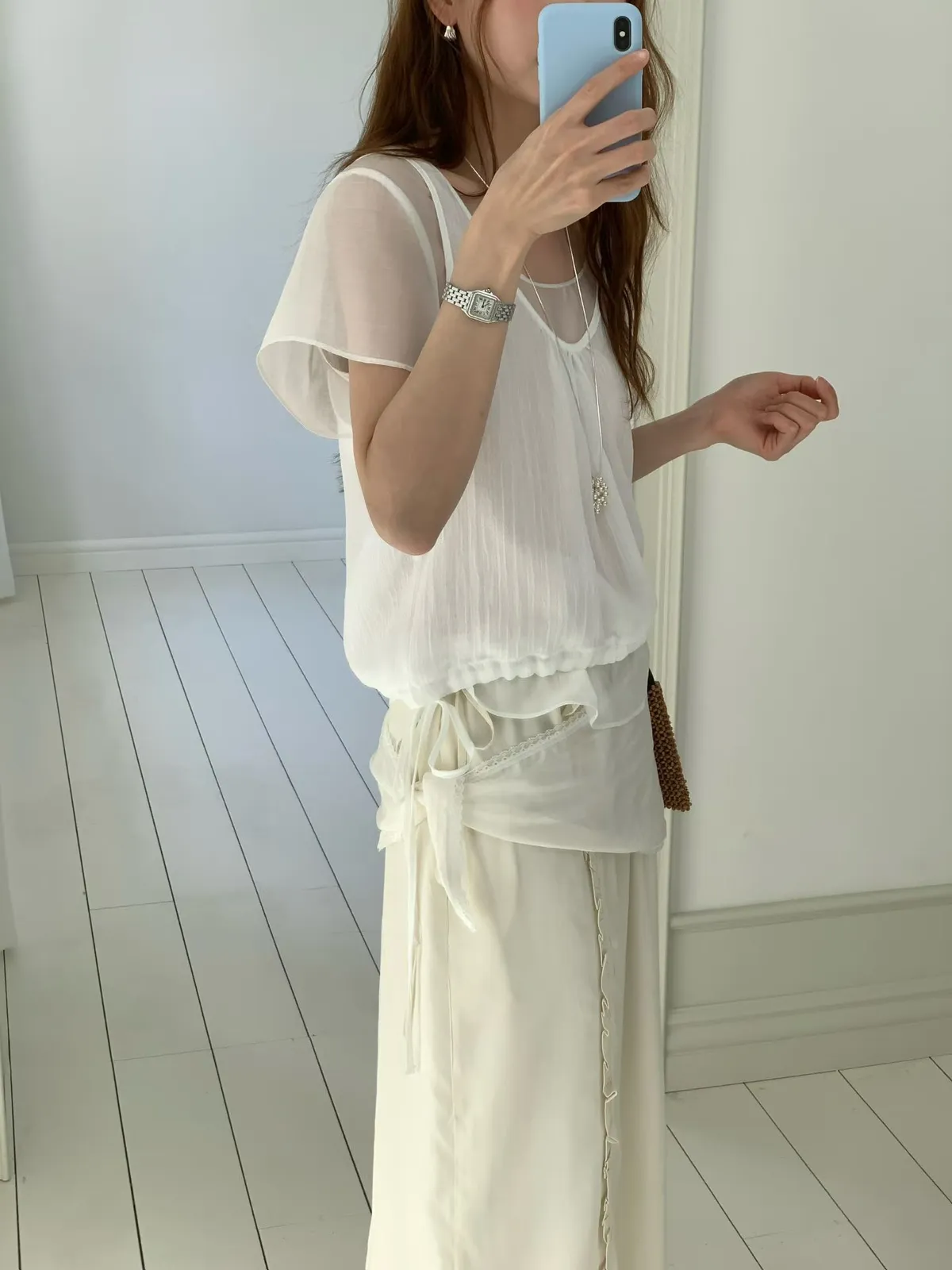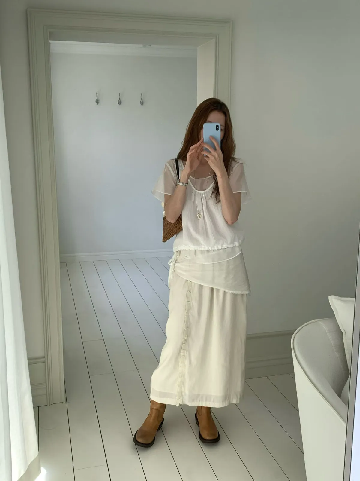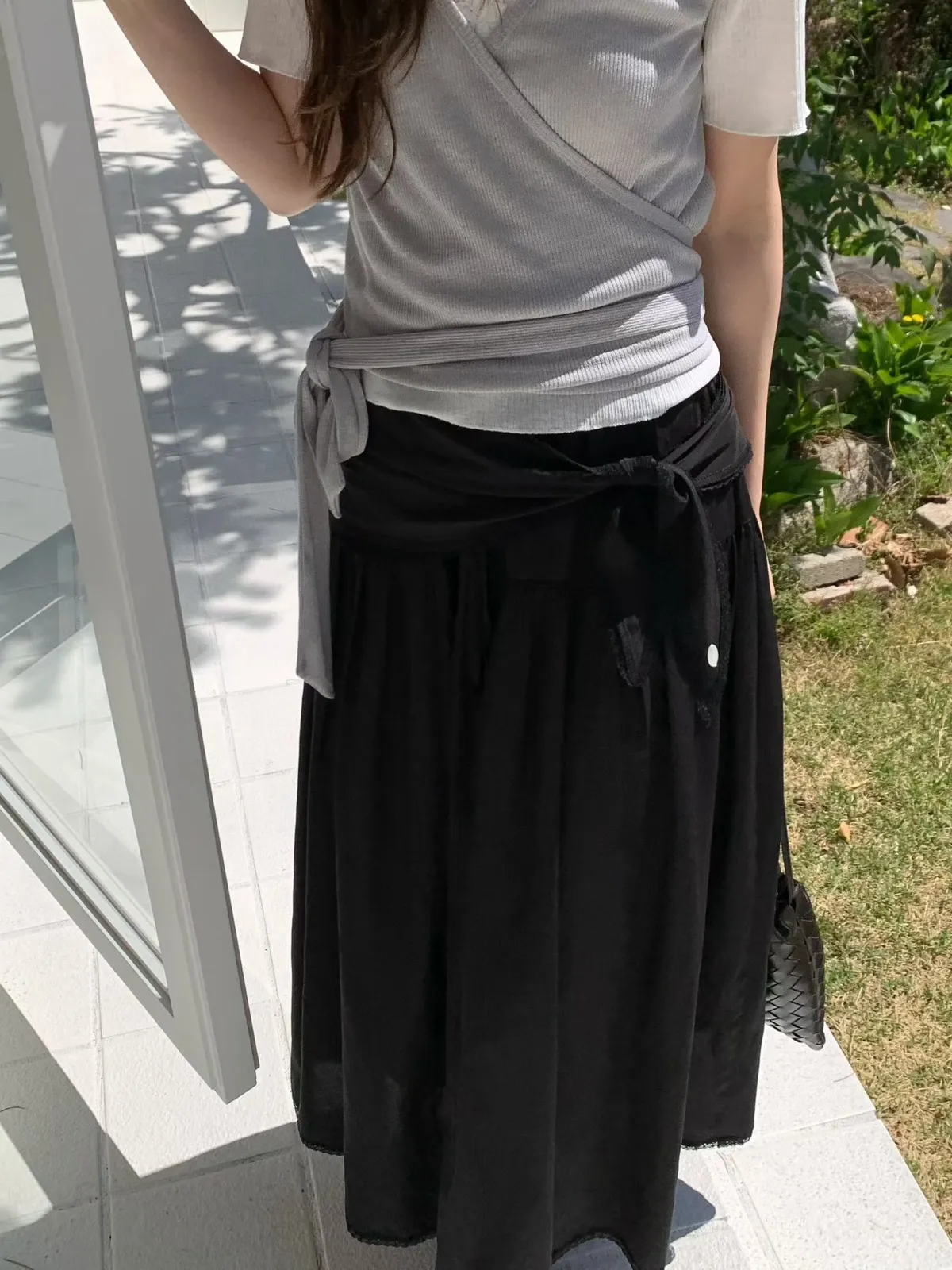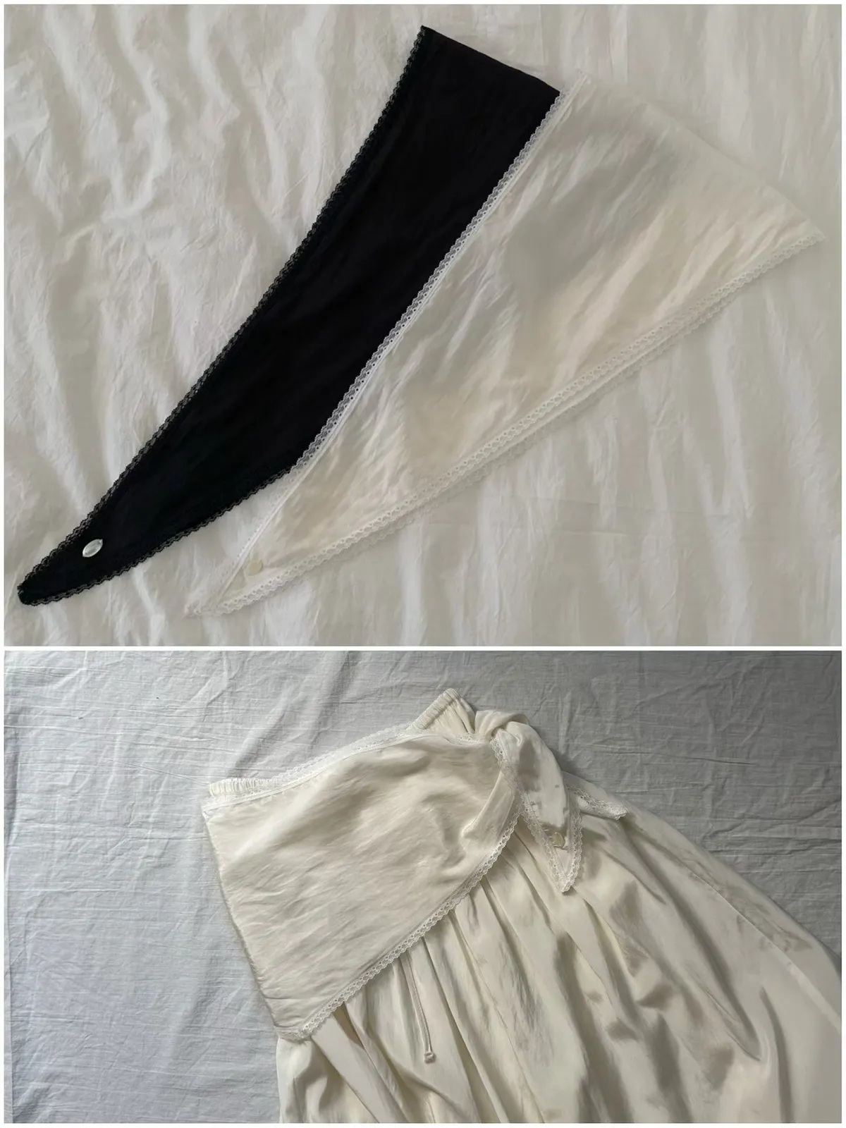 B39捲髮歐膩三角巾+綁帶圓裙2色(set)