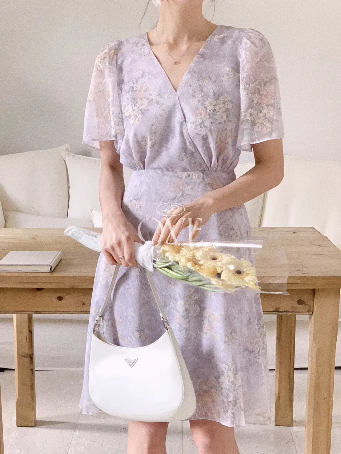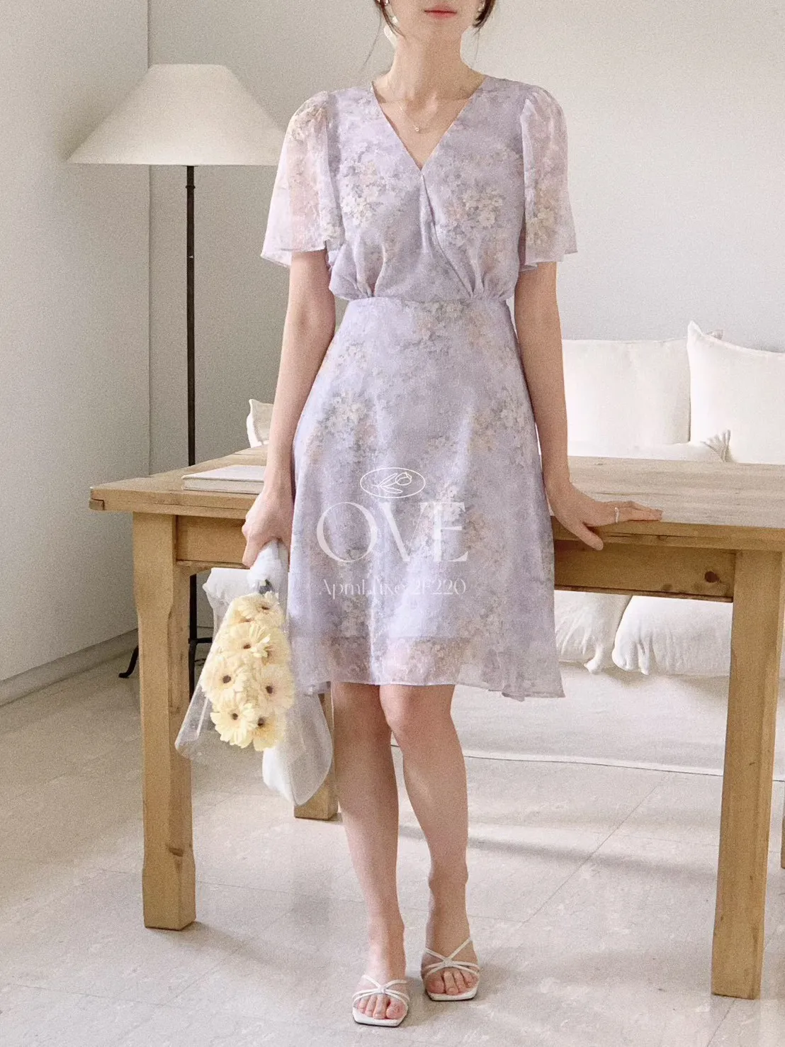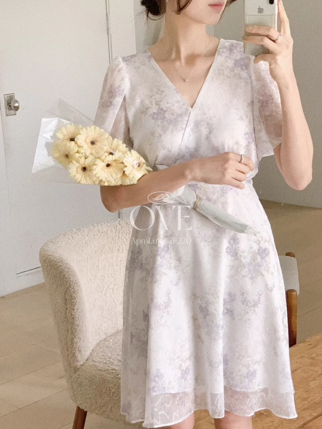 A1 0419高檔浪漫洋裝家綁帶V領雪紡洋裝2色