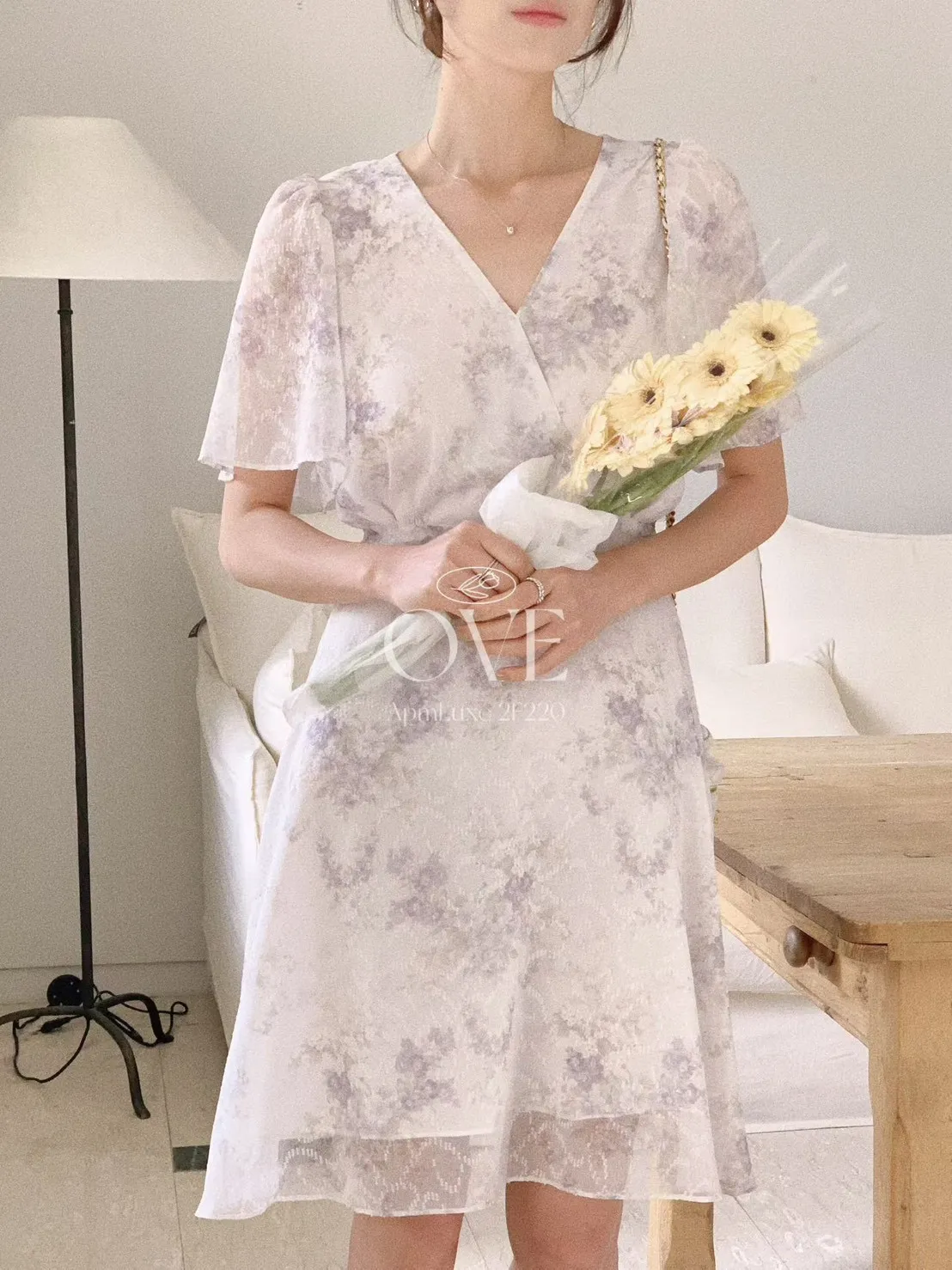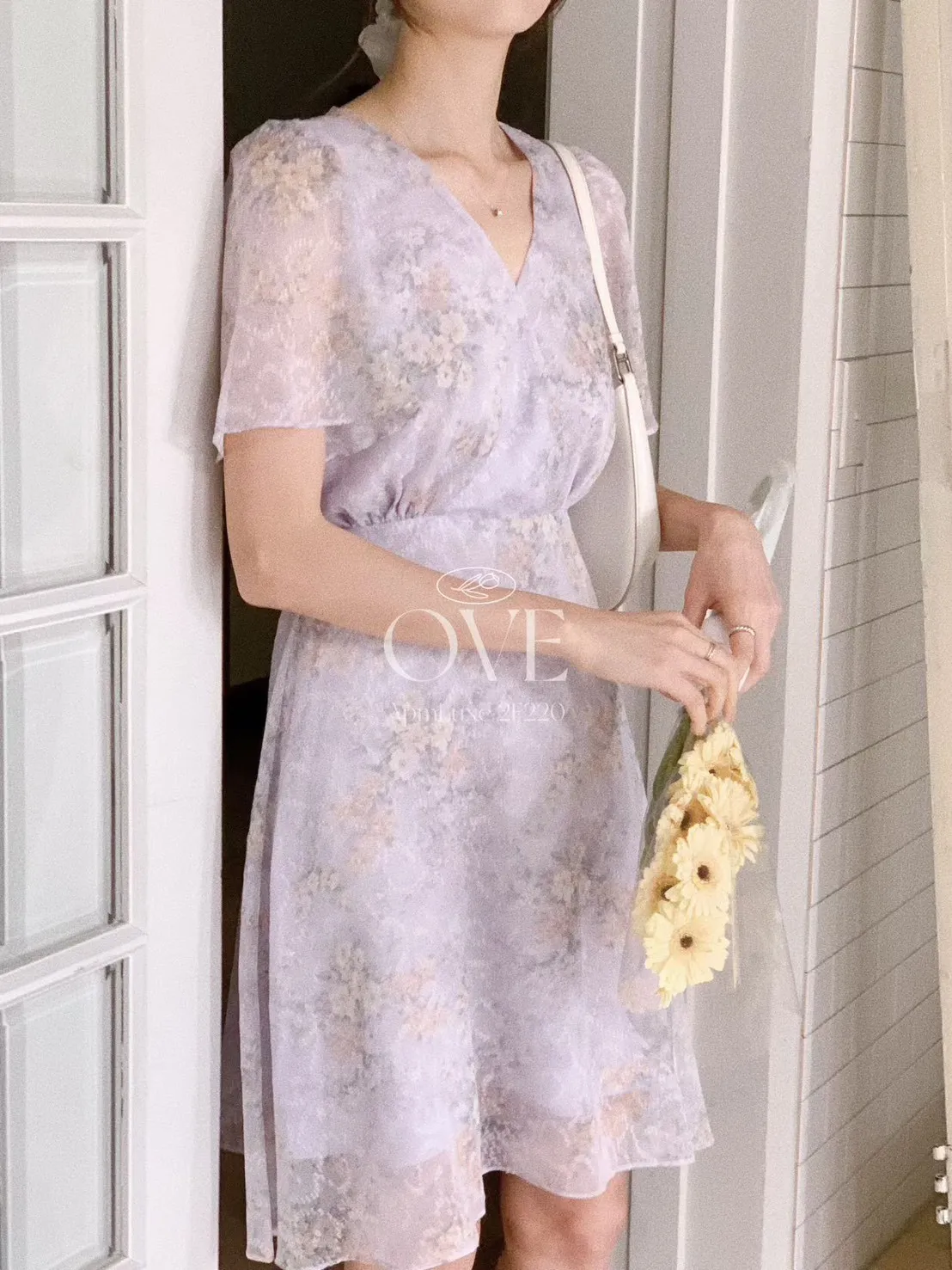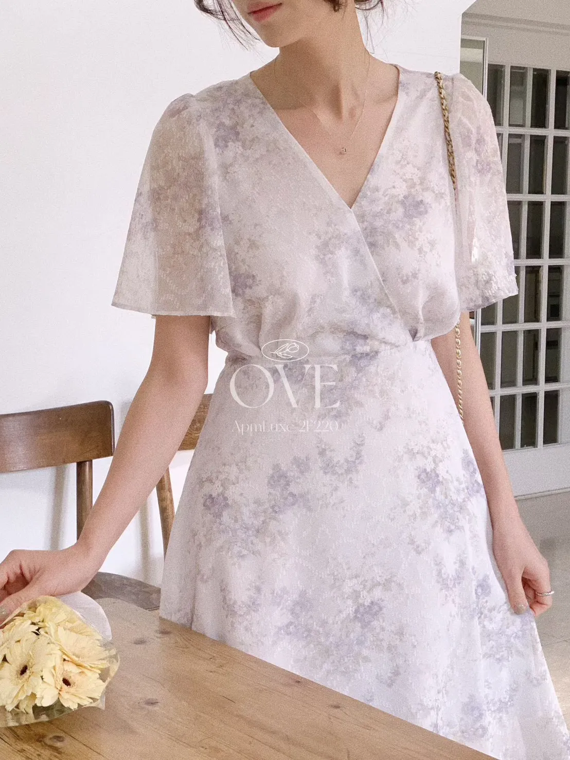 A1 0419高檔浪漫洋裝家綁帶V領雪紡洋裝2色