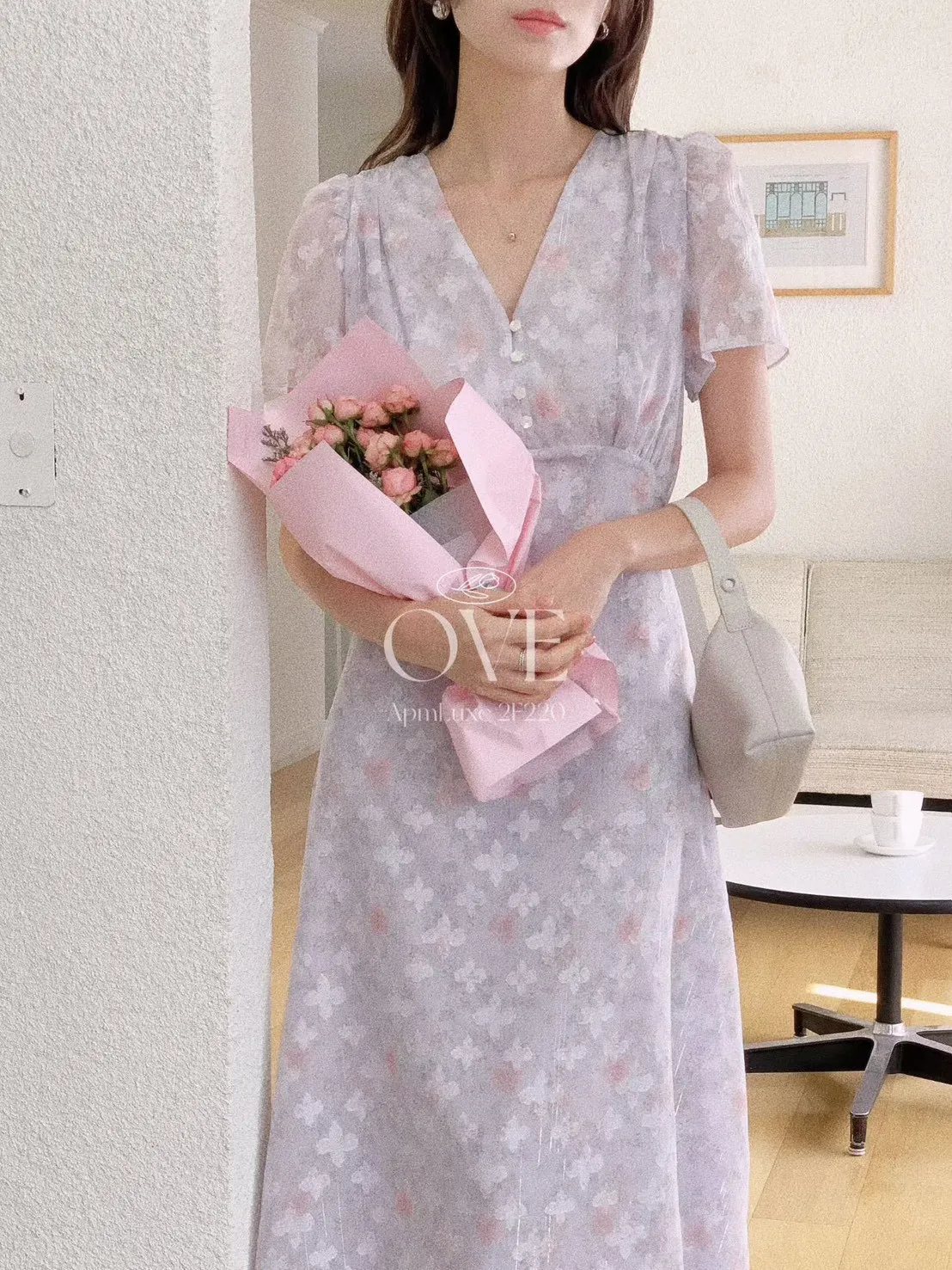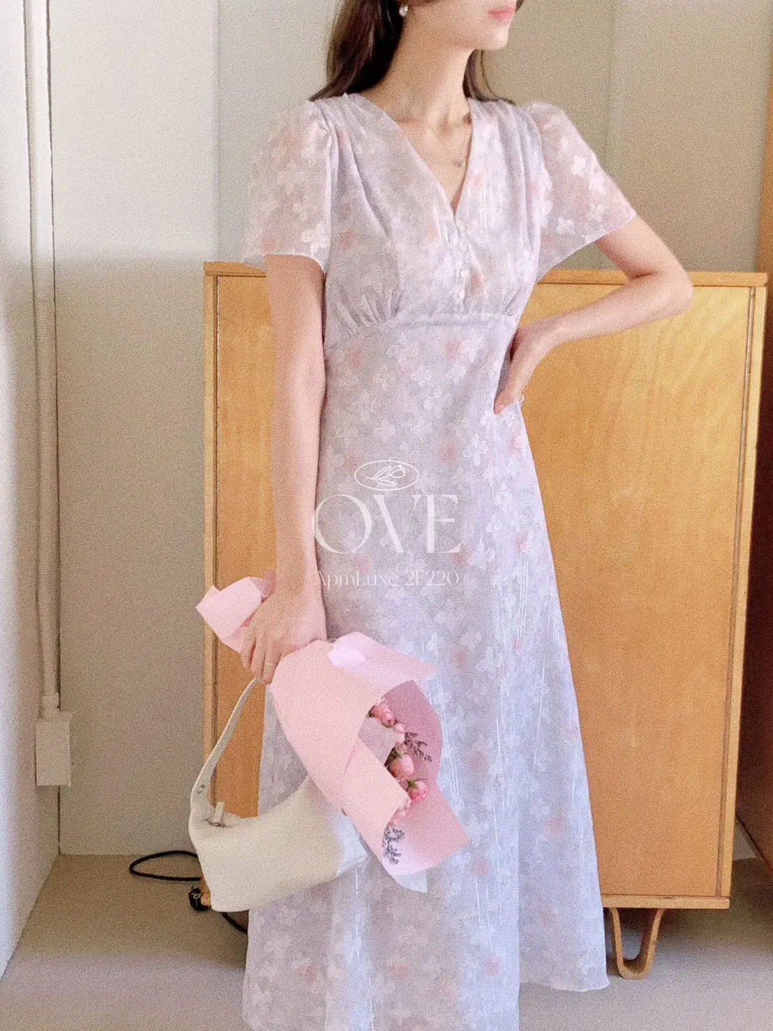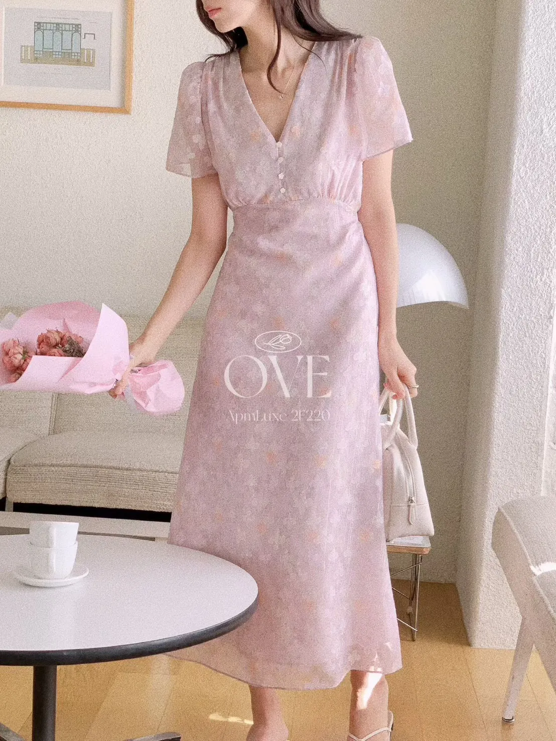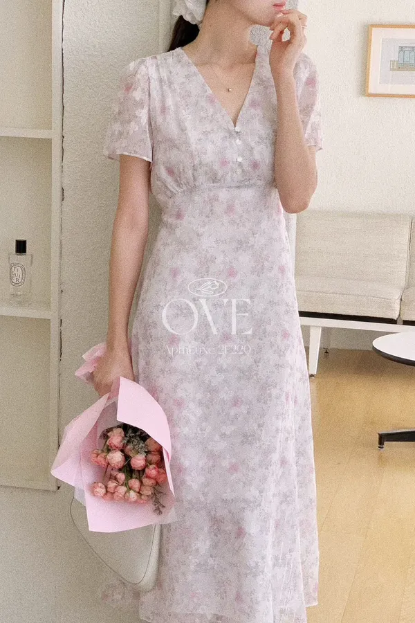 A2 0419高檔浪漫洋裝家綁帶V領金蔥碎花雪紡洋裝3色