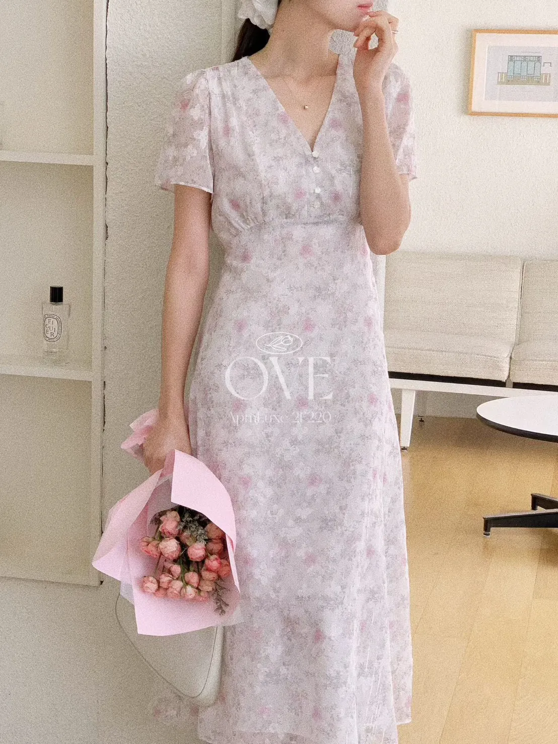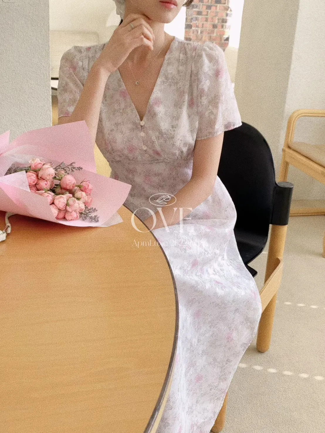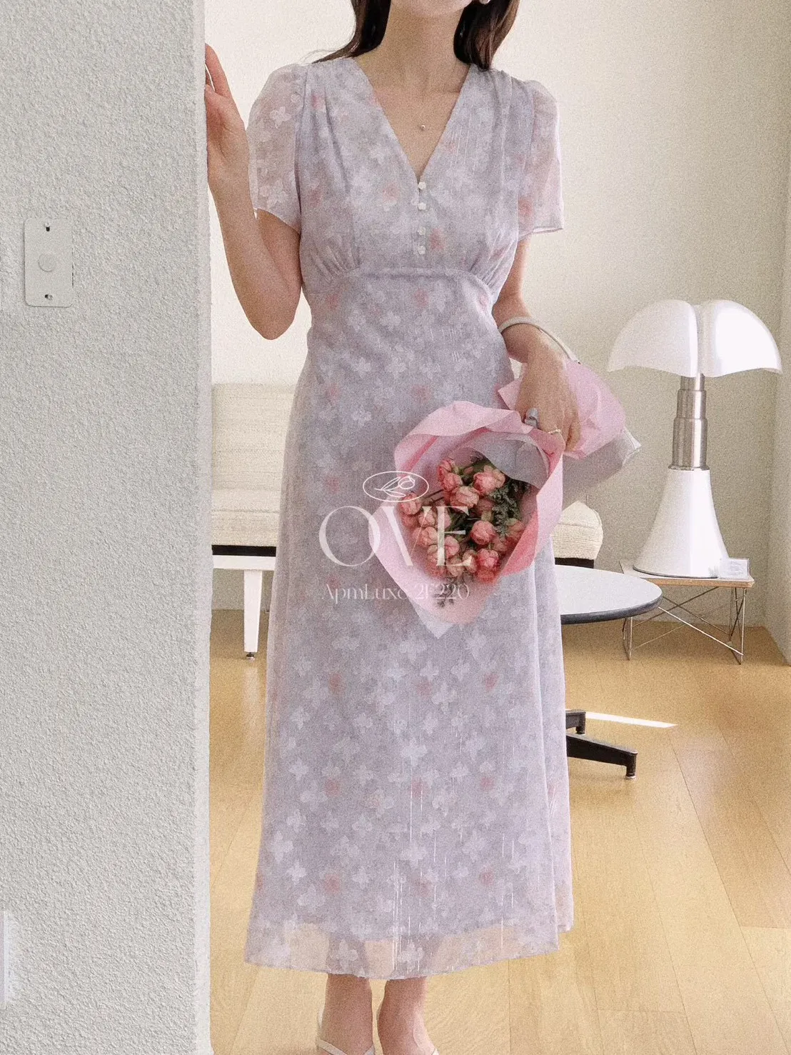 A2 0419高檔浪漫洋裝家綁帶V領金蔥碎花雪紡洋裝3色