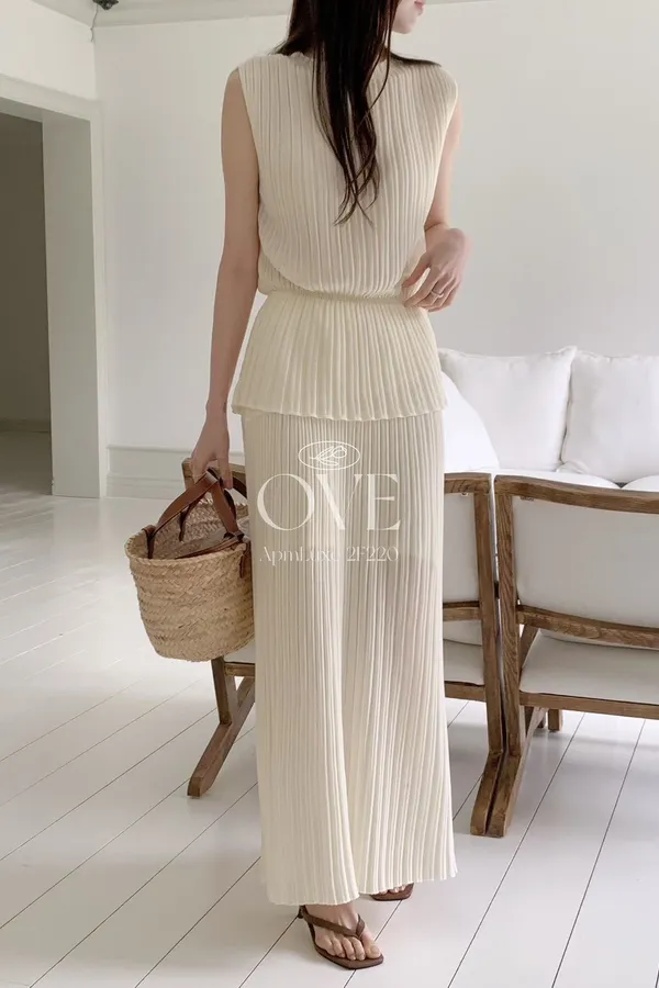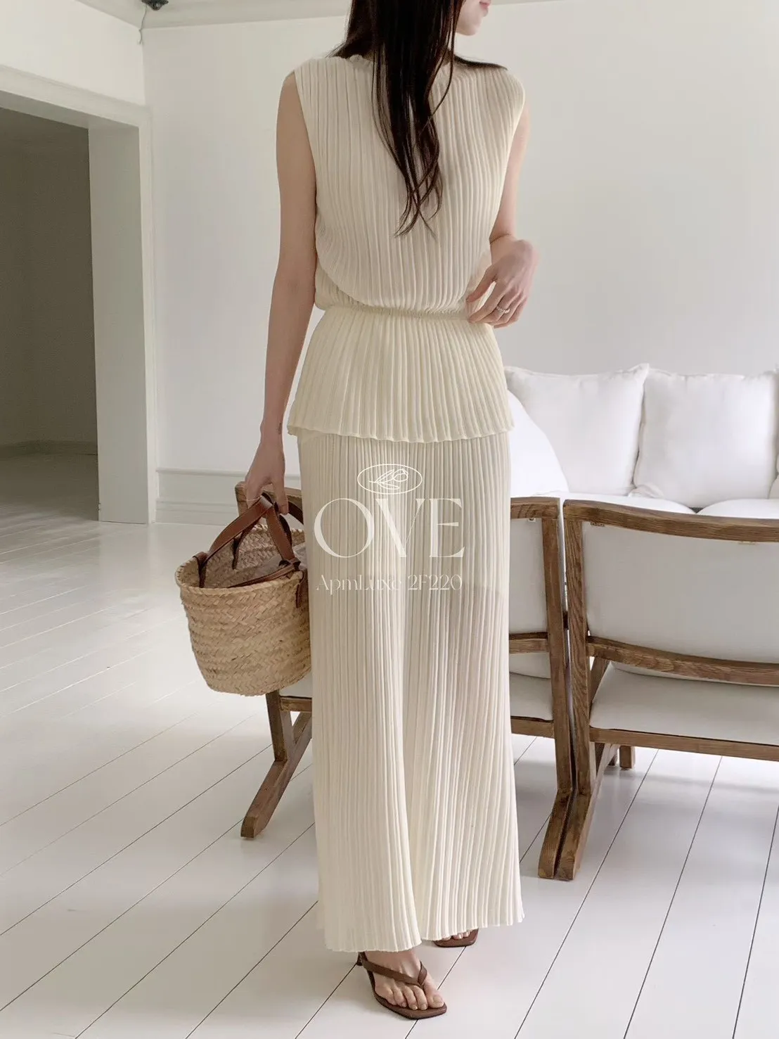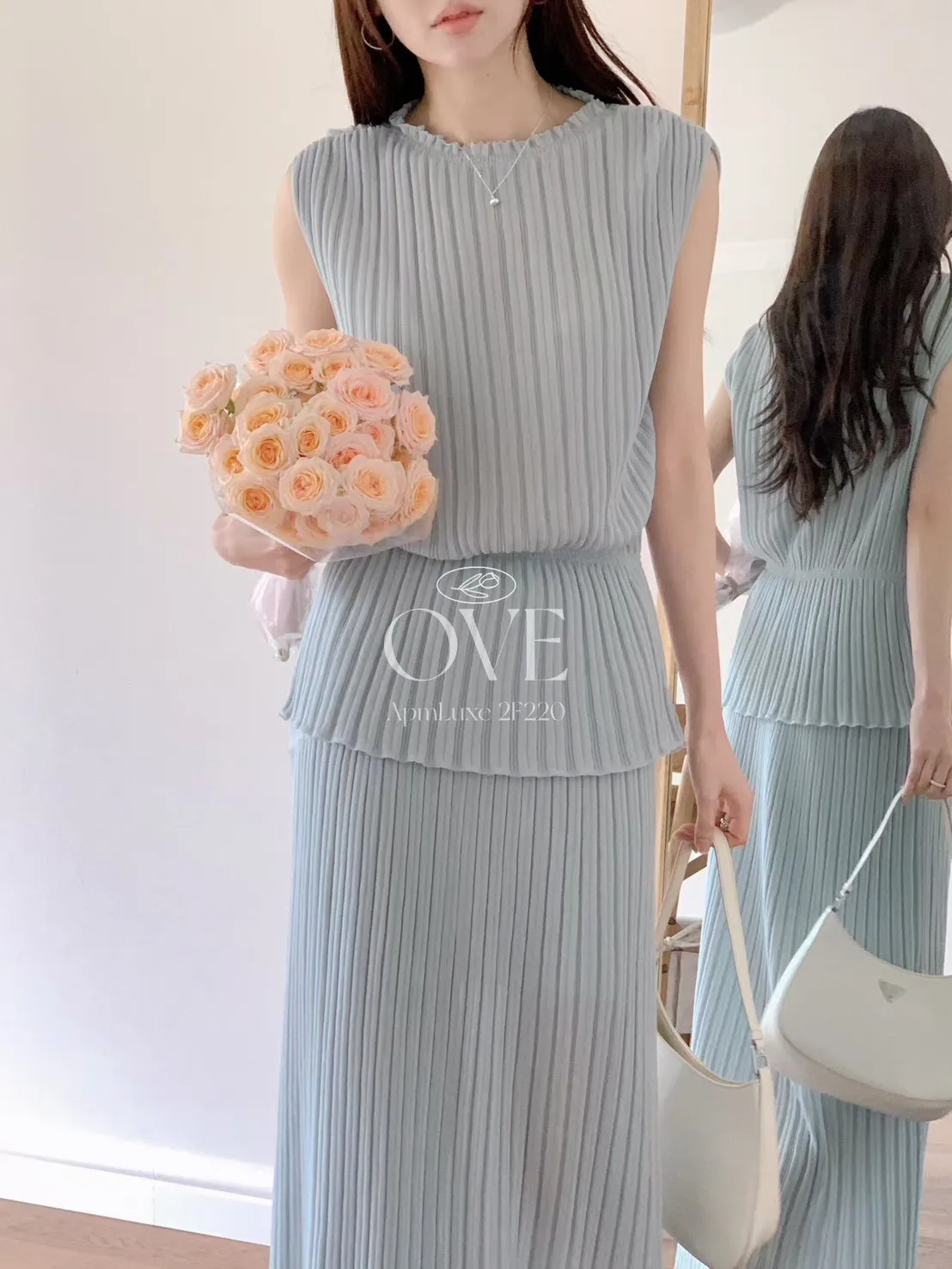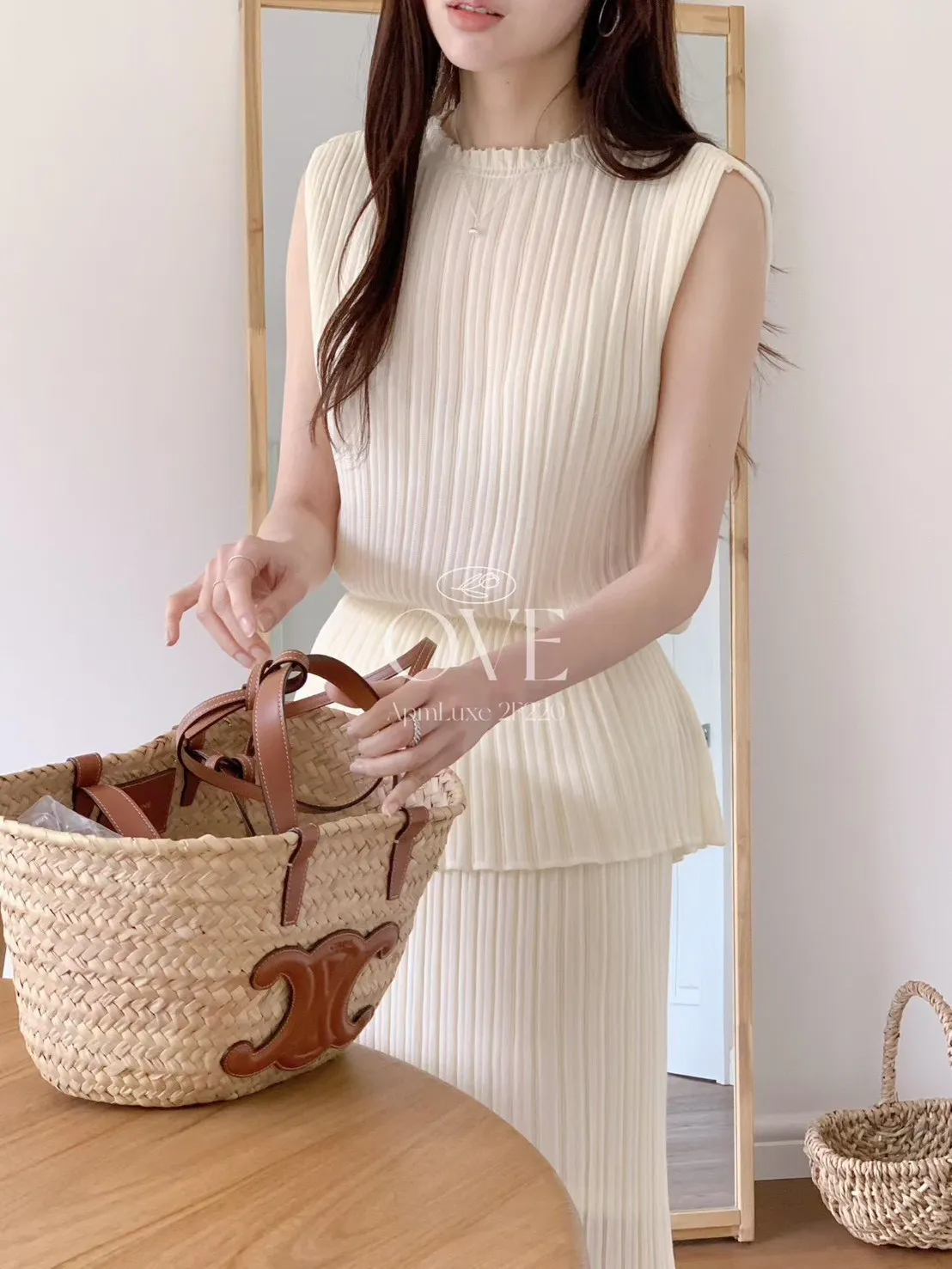 A3 0419高檔浪漫洋裝家直紋圓領針織衫+直紋針織半裙(SET)3色
