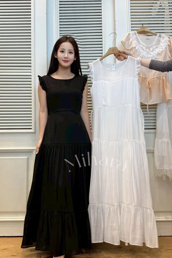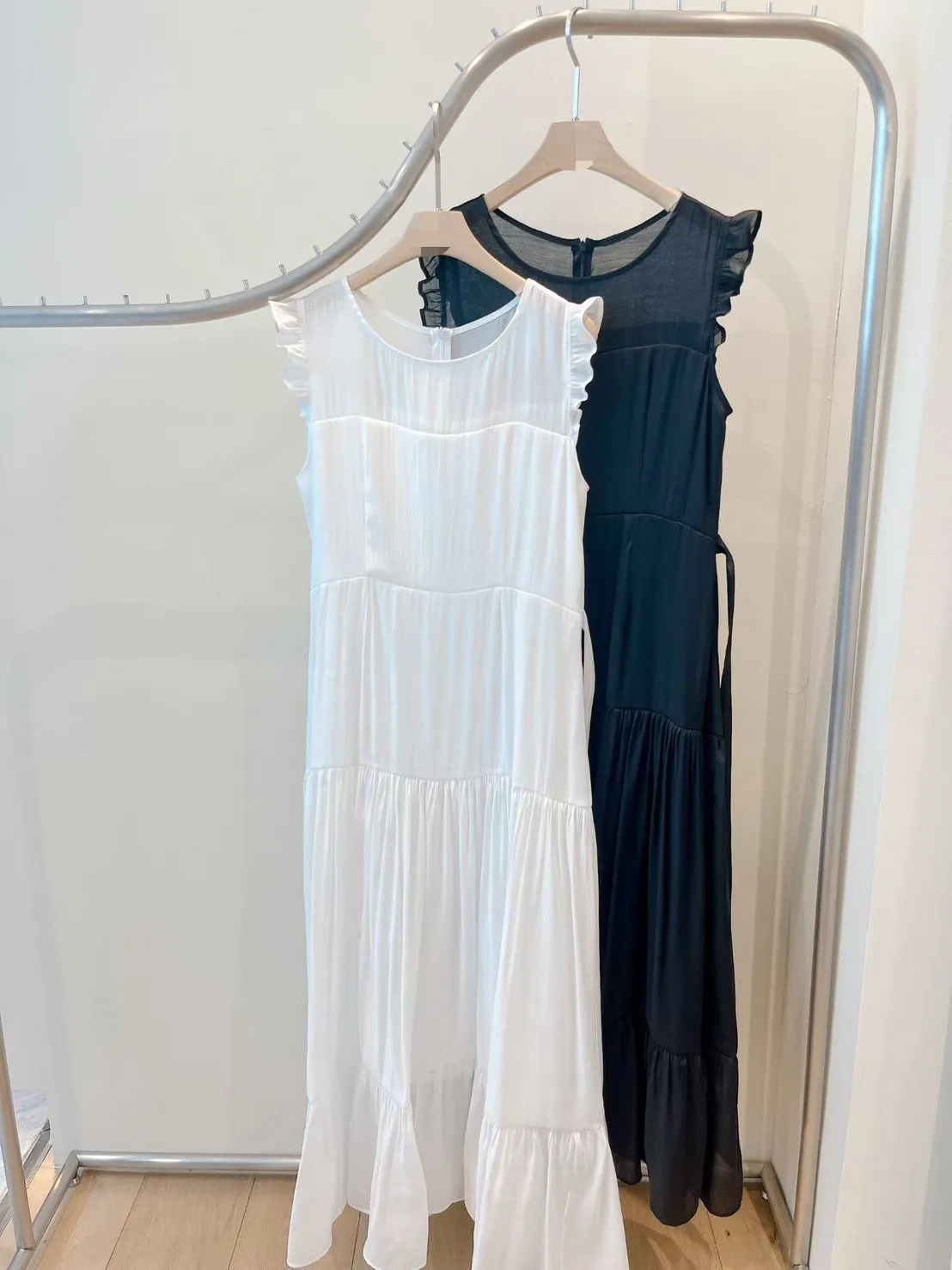 A15 0419高檔浪漫洋裝家綁帶圓領蛋糕裙雪紡洋裝2色