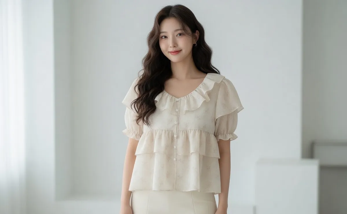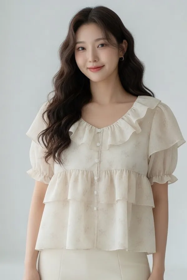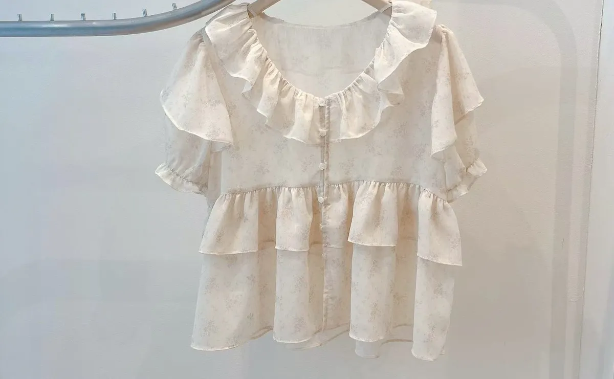 A19 0419高檔浪漫洋裝家荷葉圓領雪紡上衣