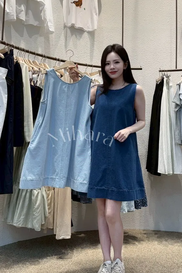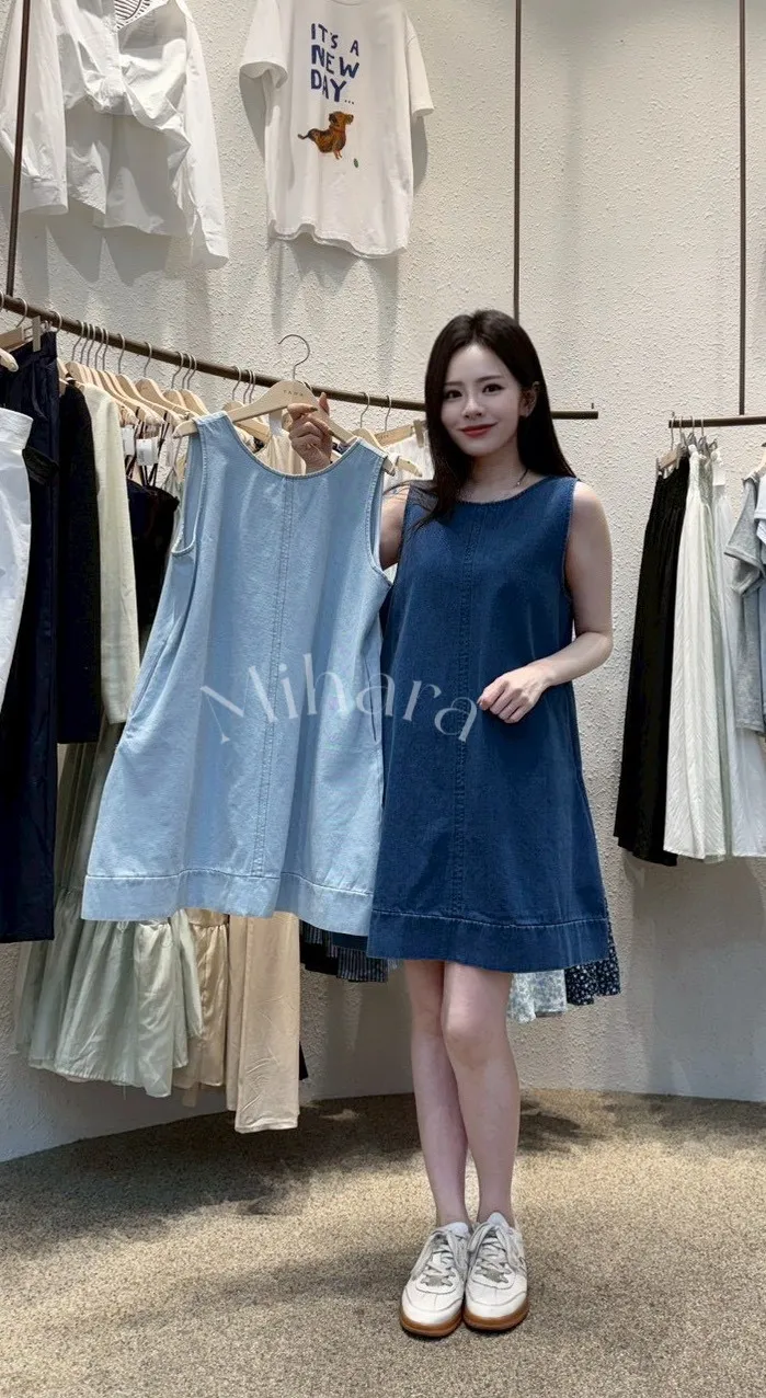 A32 0419挖背圓領牛仔背心洋裝2色