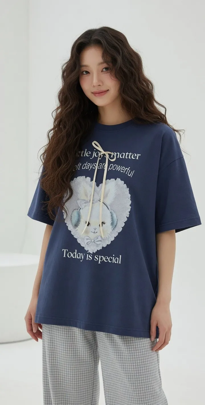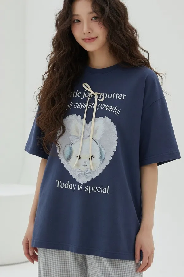 B512設計棟兔兔蝴蝶結T恤2色