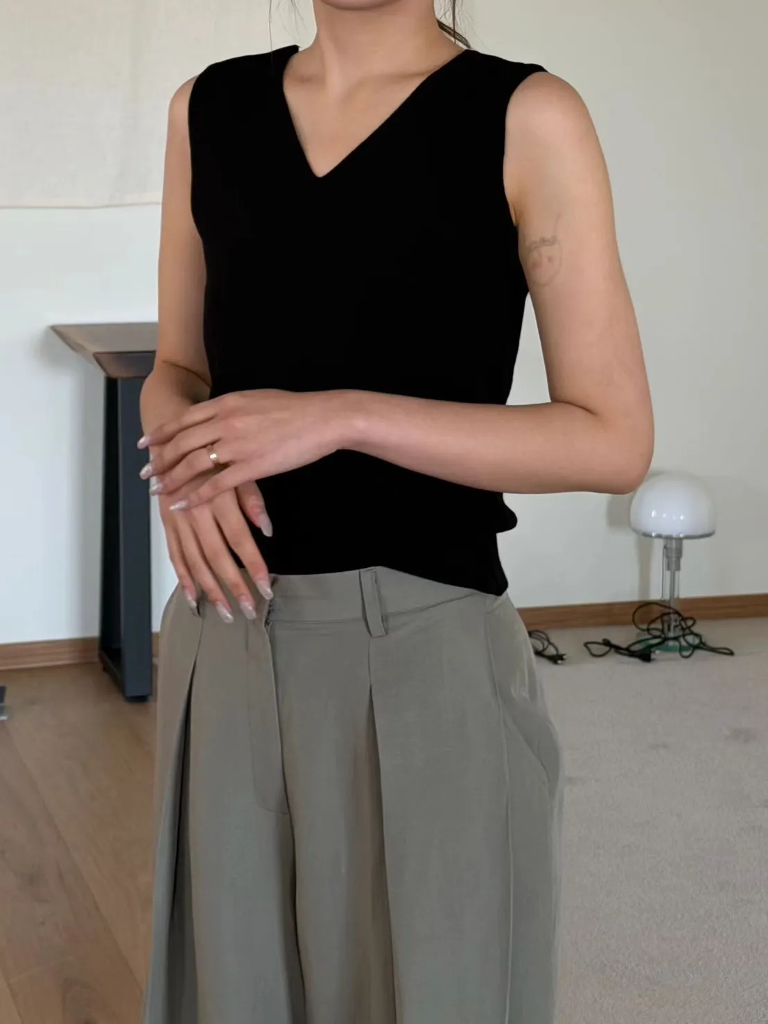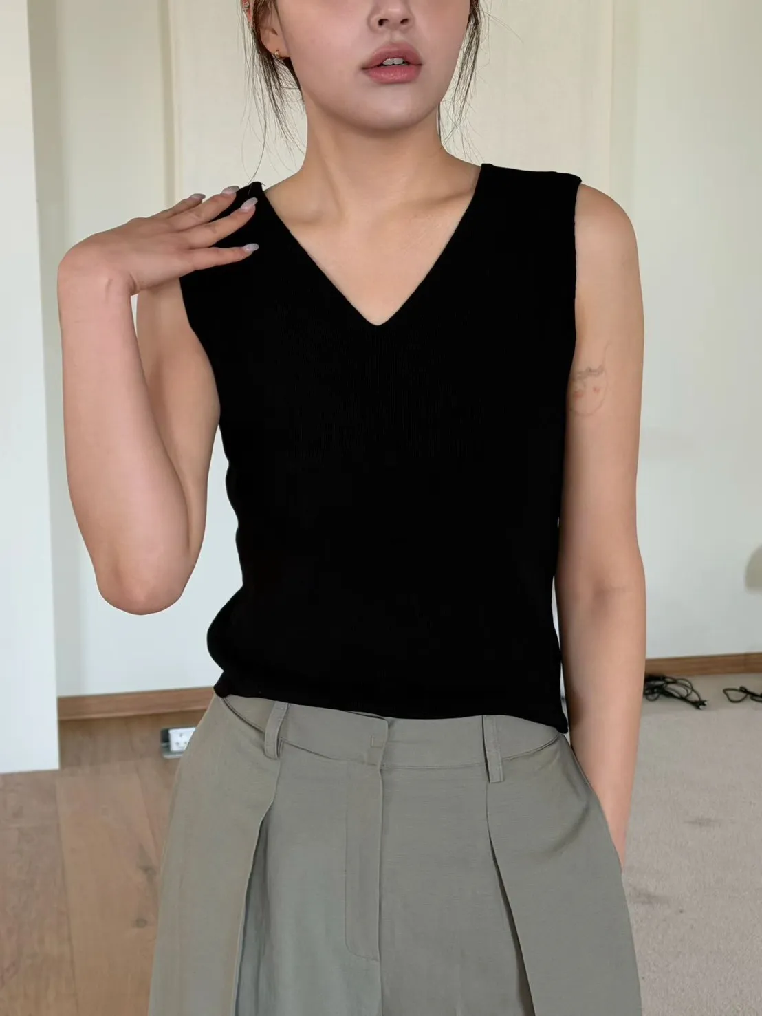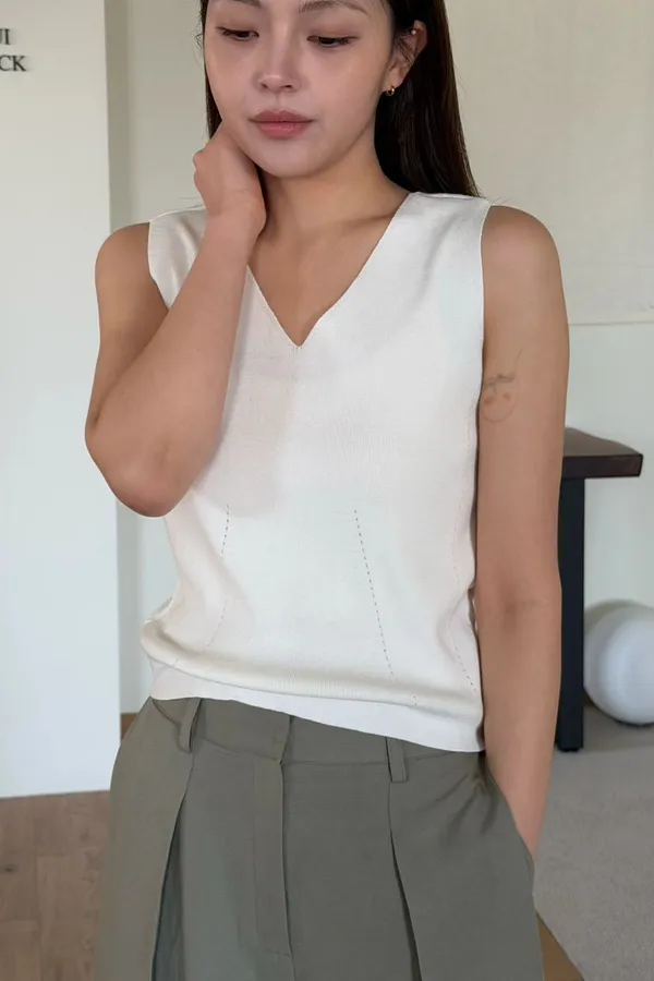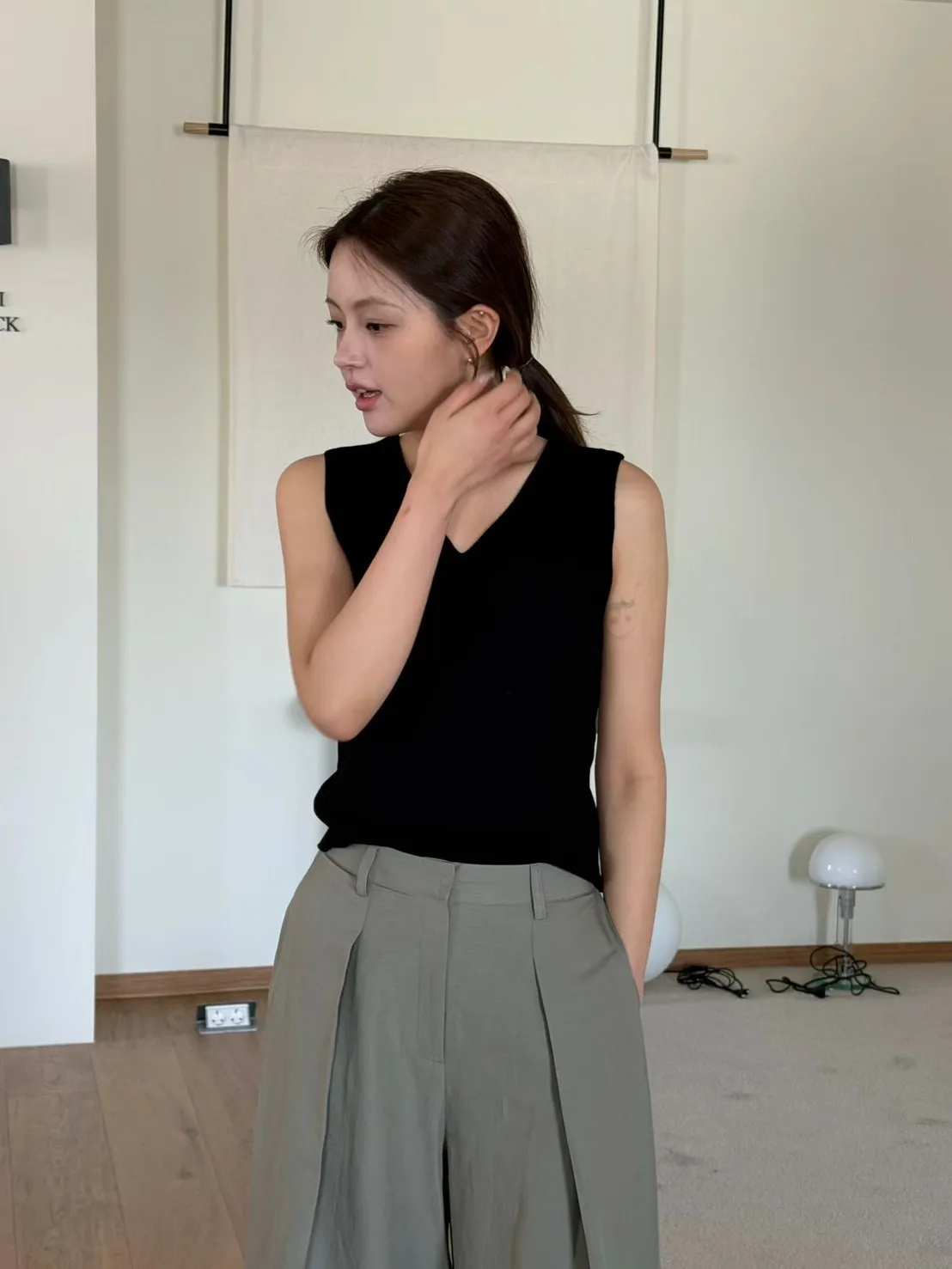 A6 0421氣質歐膩家兩面穿V領方領人造絲針織背心2色