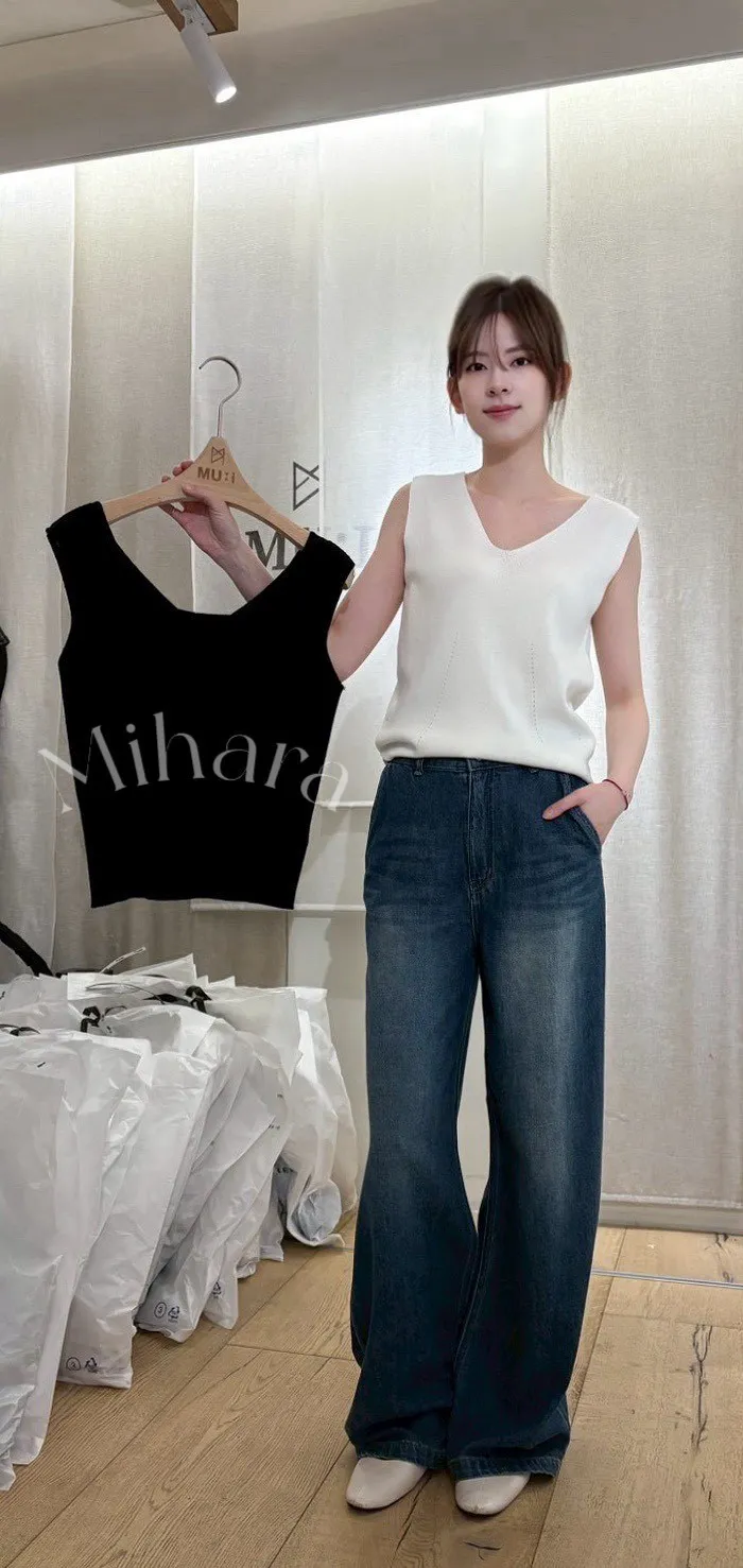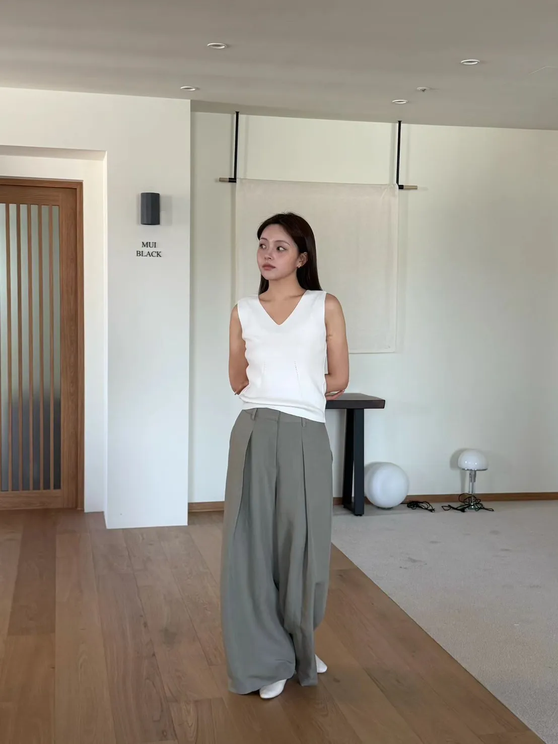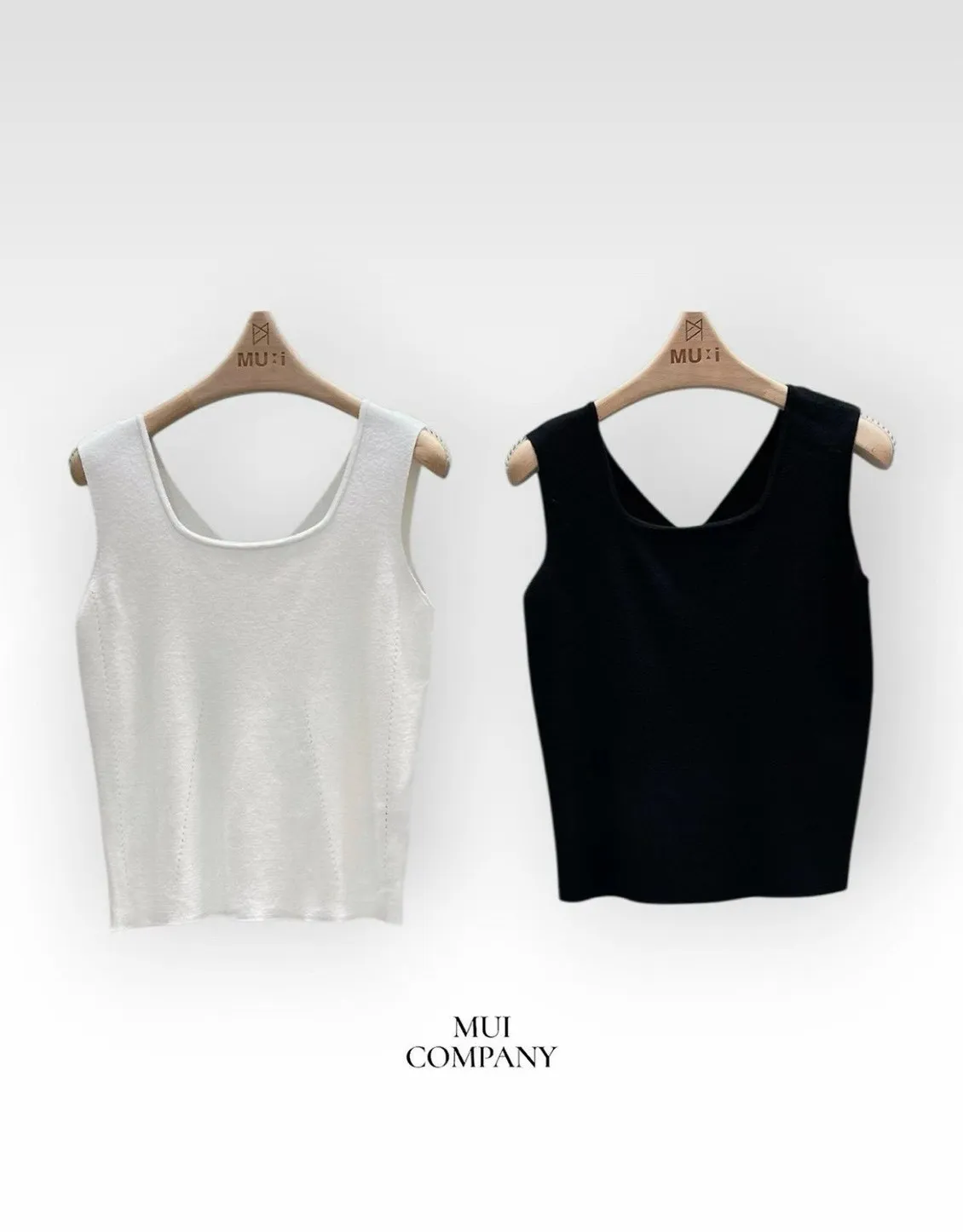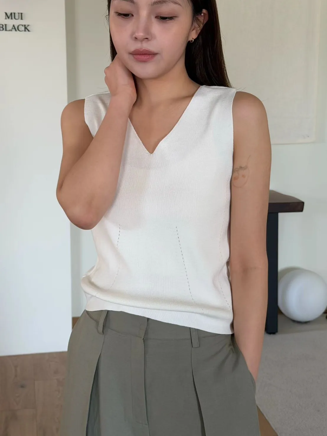 A6 0421氣質歐膩家兩面穿V領方領人造絲針織背心2色