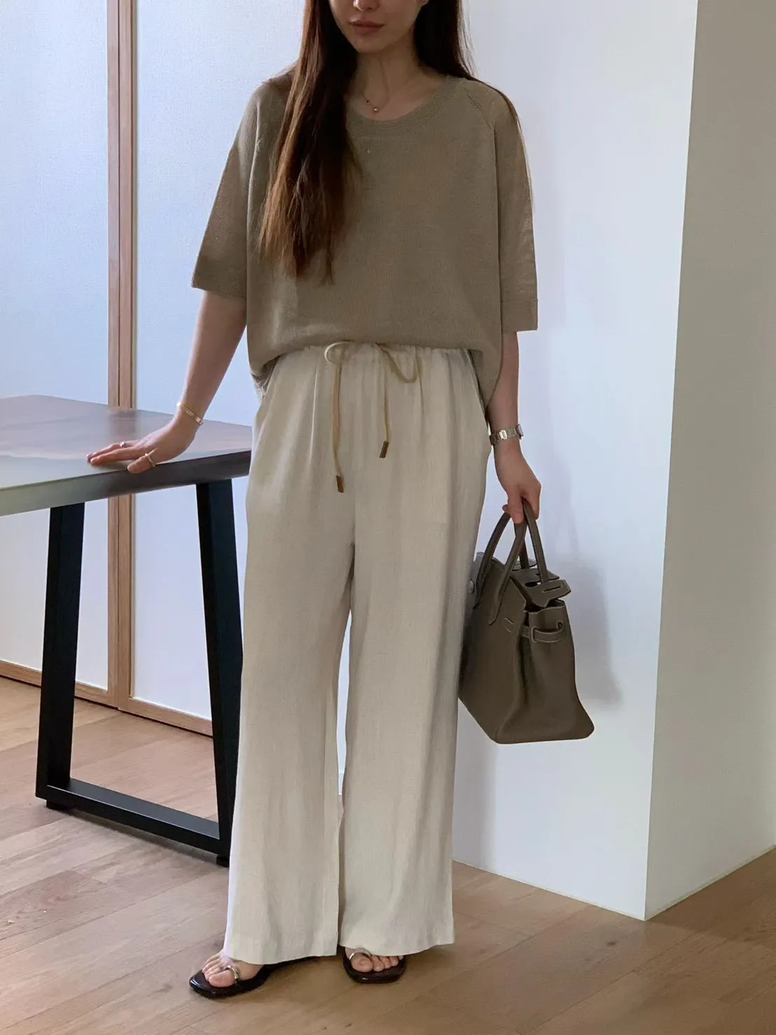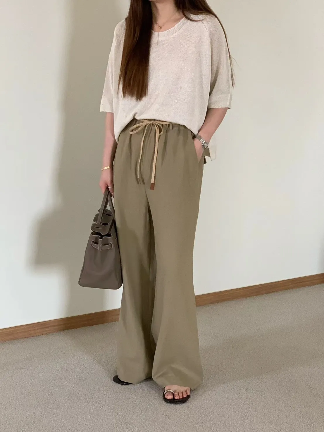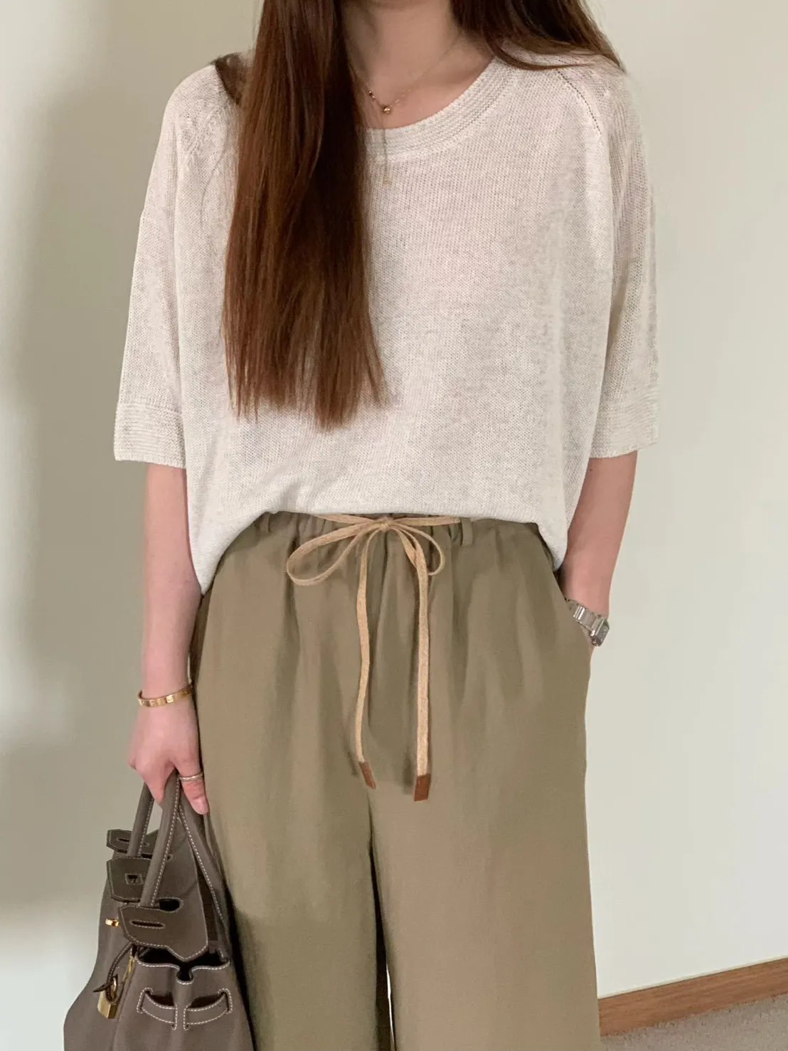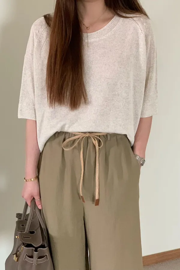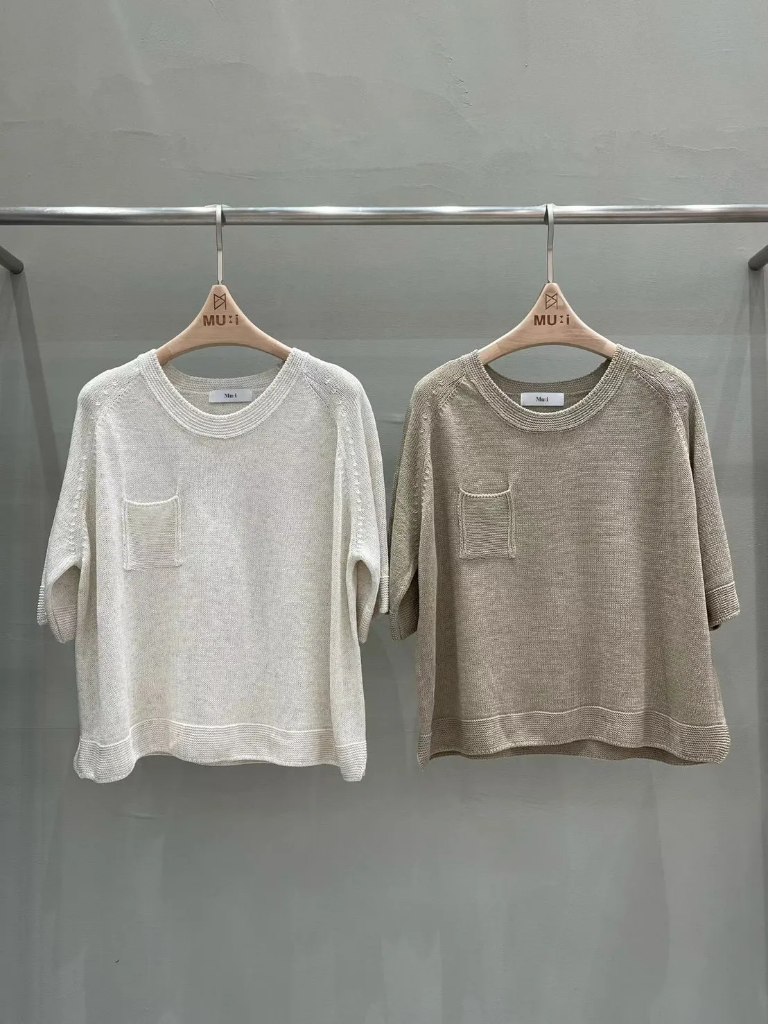 A24 0421氣質歐膩家側開衩小口袋圓領人造絲針織衫2色