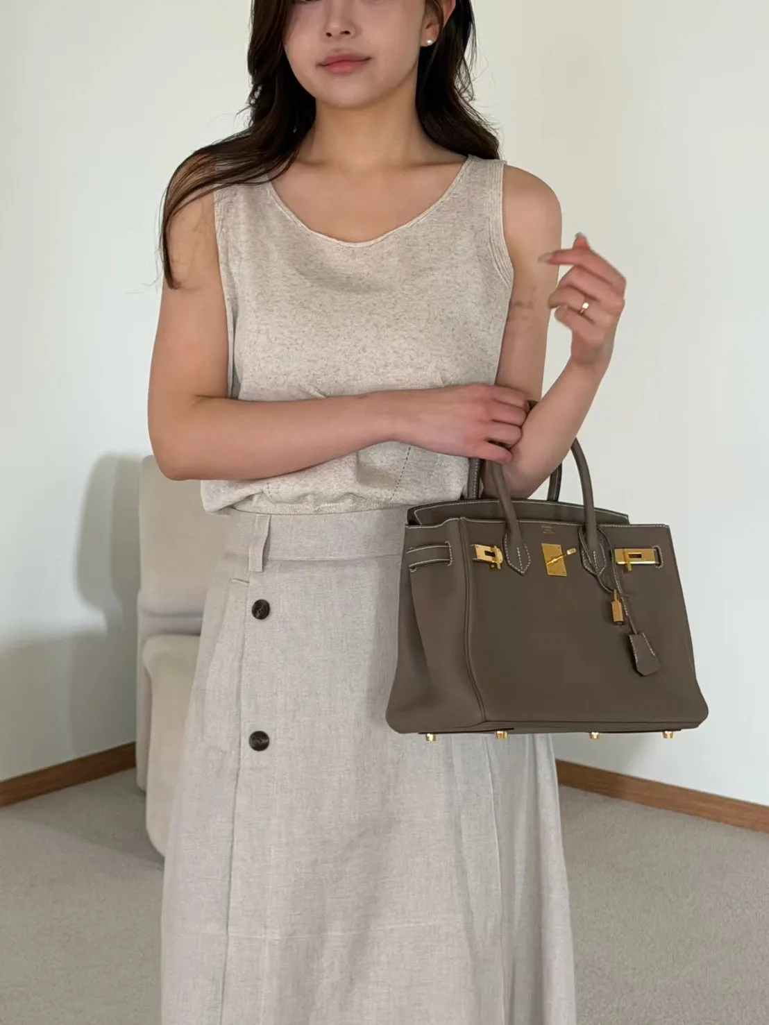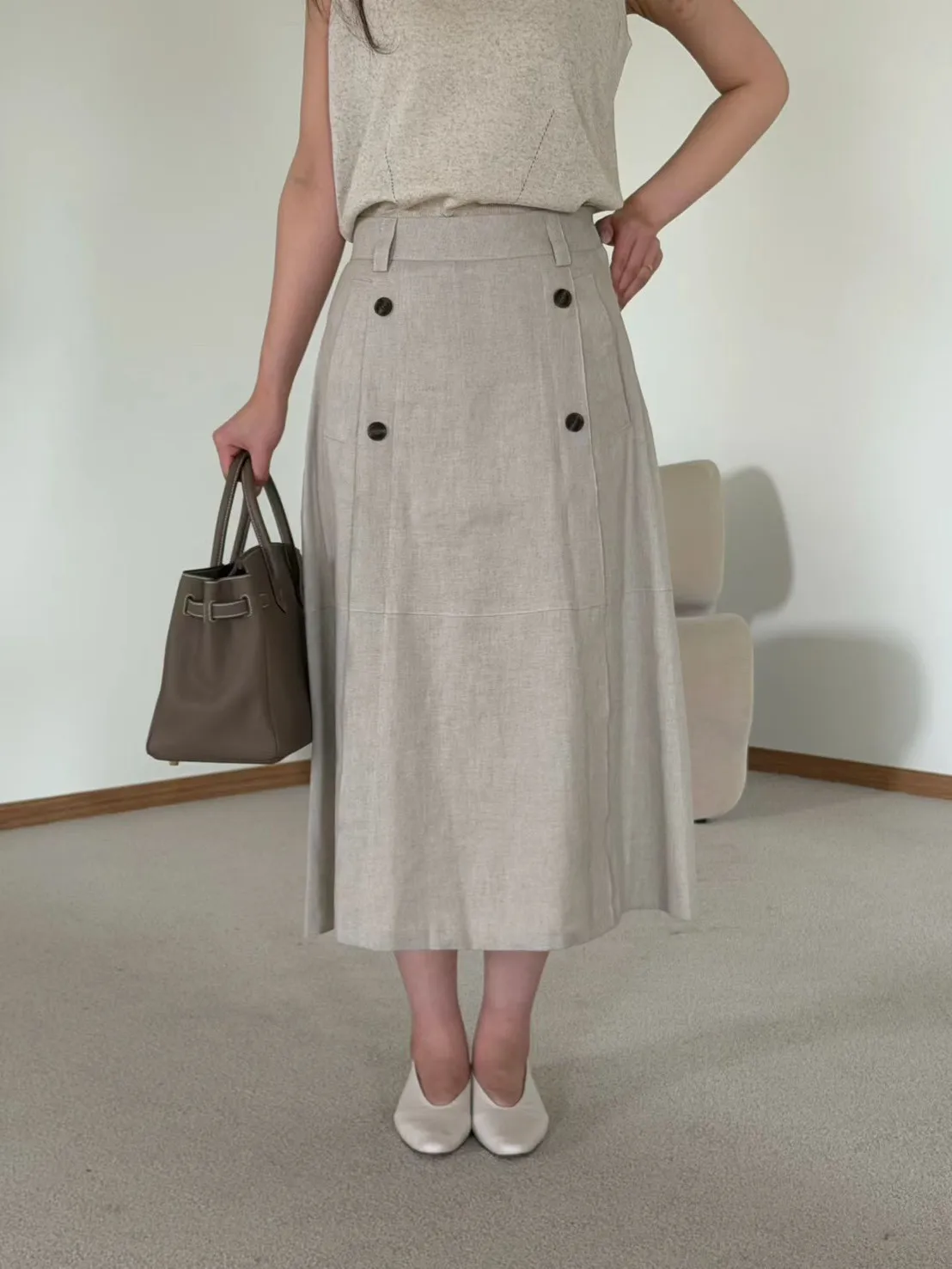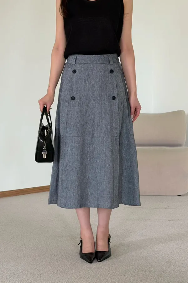A28 0421氣質歐膩家棉麻雙排釦西裝半裙2色(S/M/L)