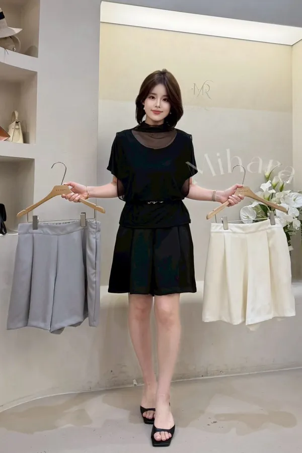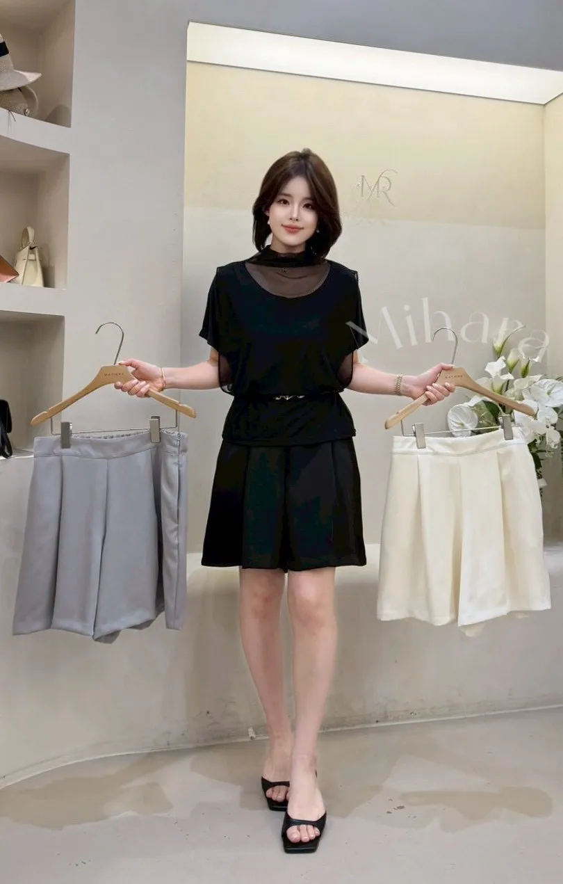 A37 0422可愛歐膩家立體壓褶A字雪紡短褲3色