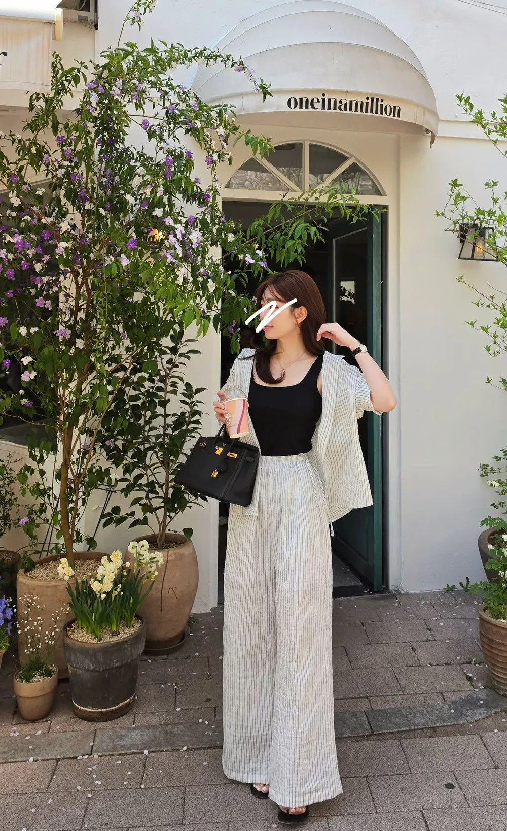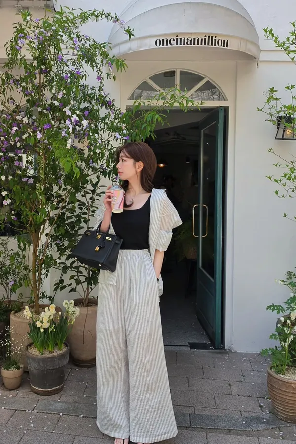 A53 0422漂亮歐膩家鬆弛時髦感天絲條紋長褲3色