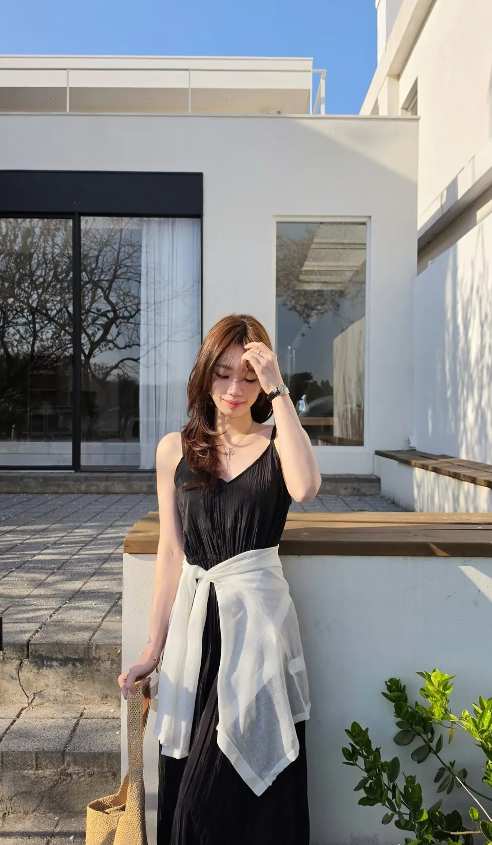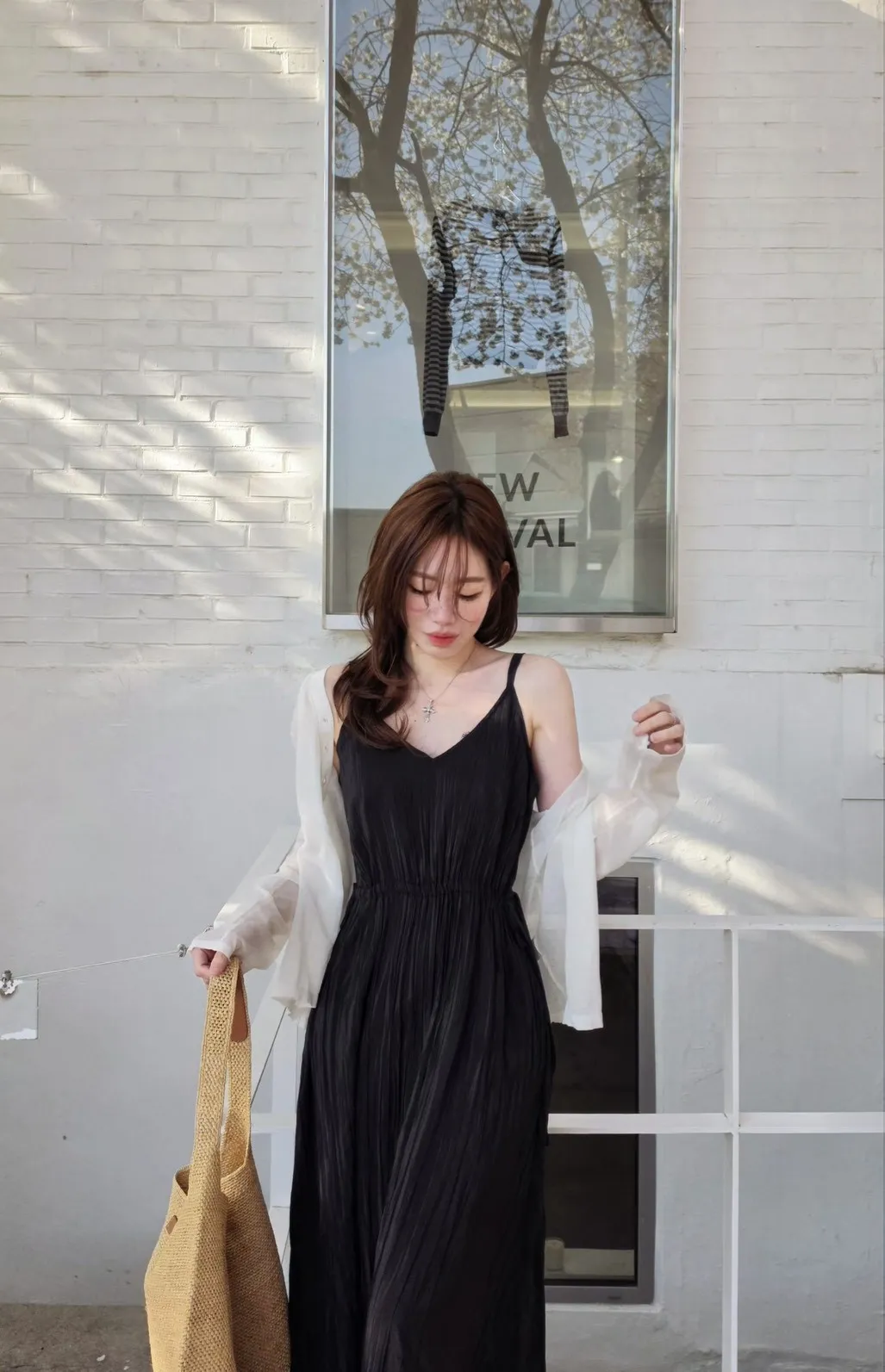 A57 0422漂亮歐膩家微光澤波紋氣質(長)洋裝3色