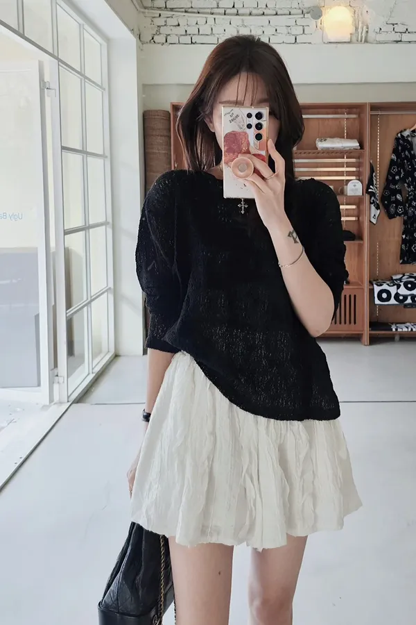 A58 0422漂亮歐膩家圓領可拉斜肩簍空上衣3色