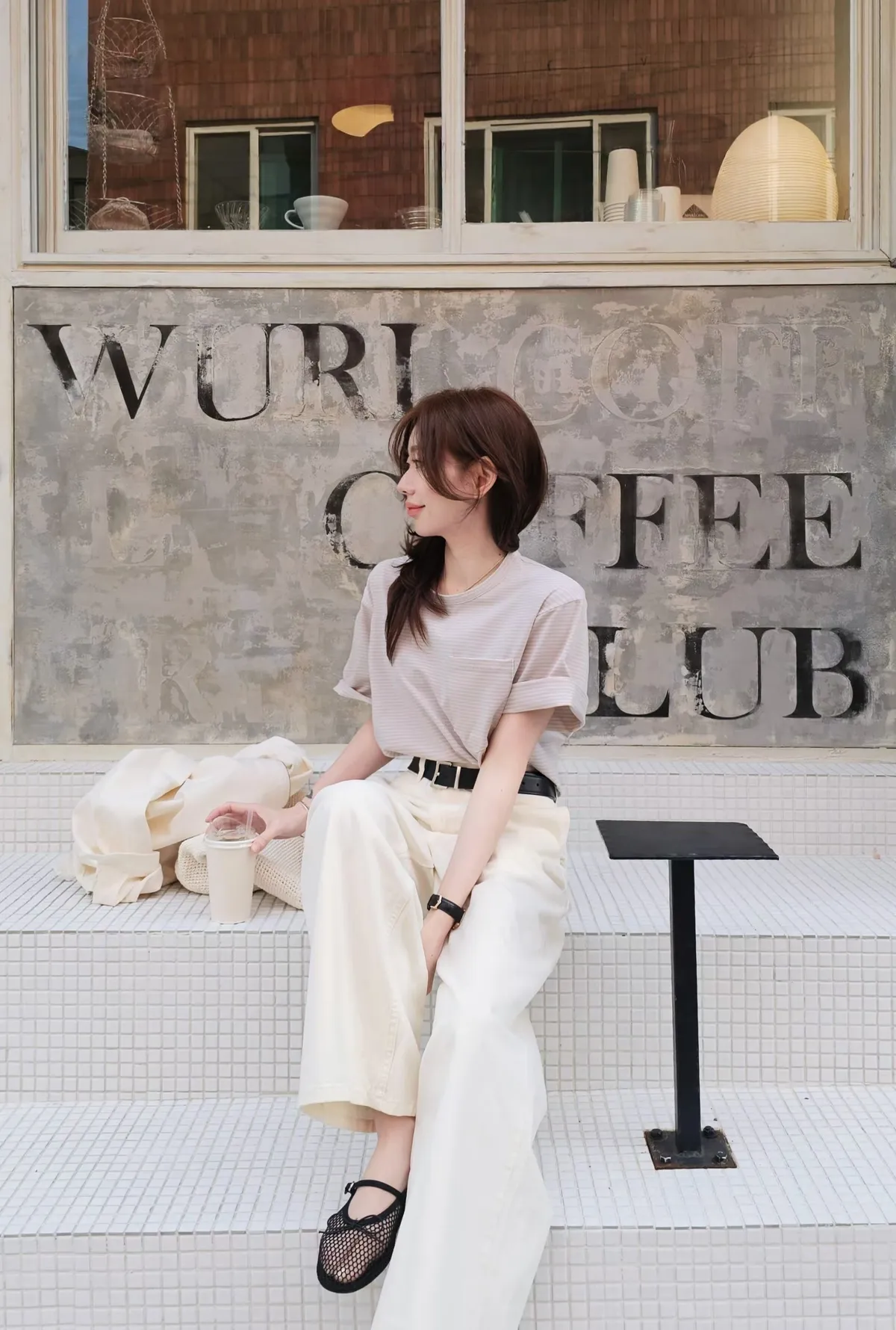 A65 0422漂亮歐膩家高質感韓妞條紋彈力T4色