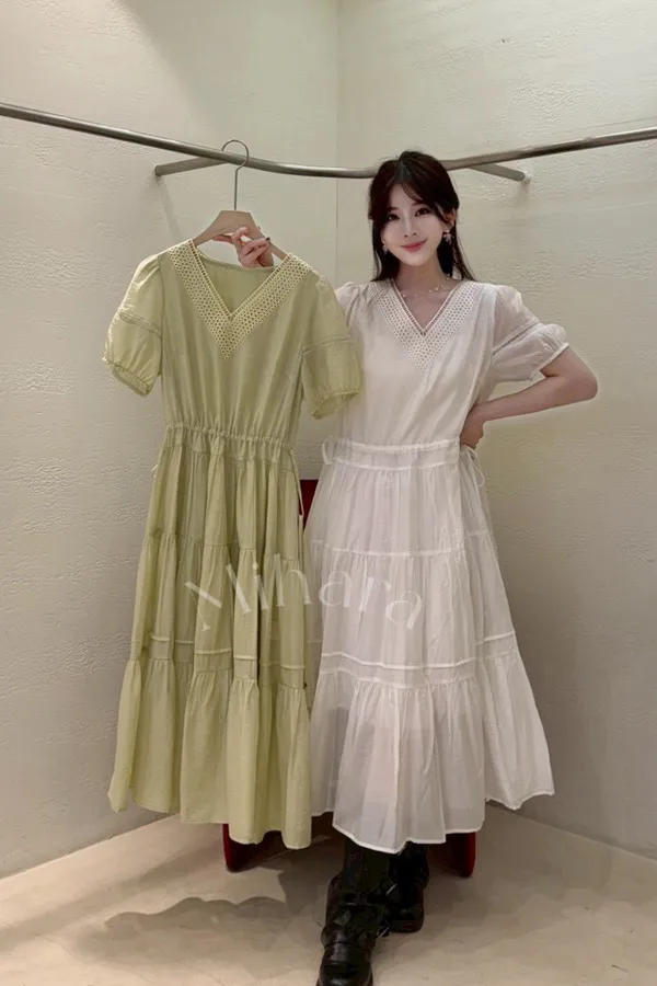 A15 0426高檔W外套家V領蛋糕裙洋裝2色