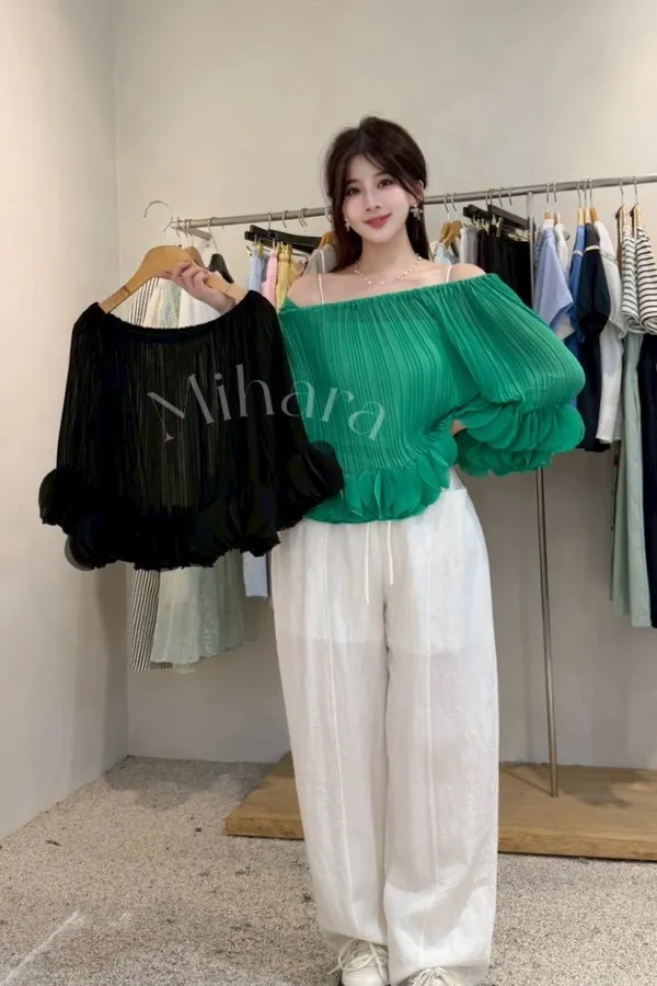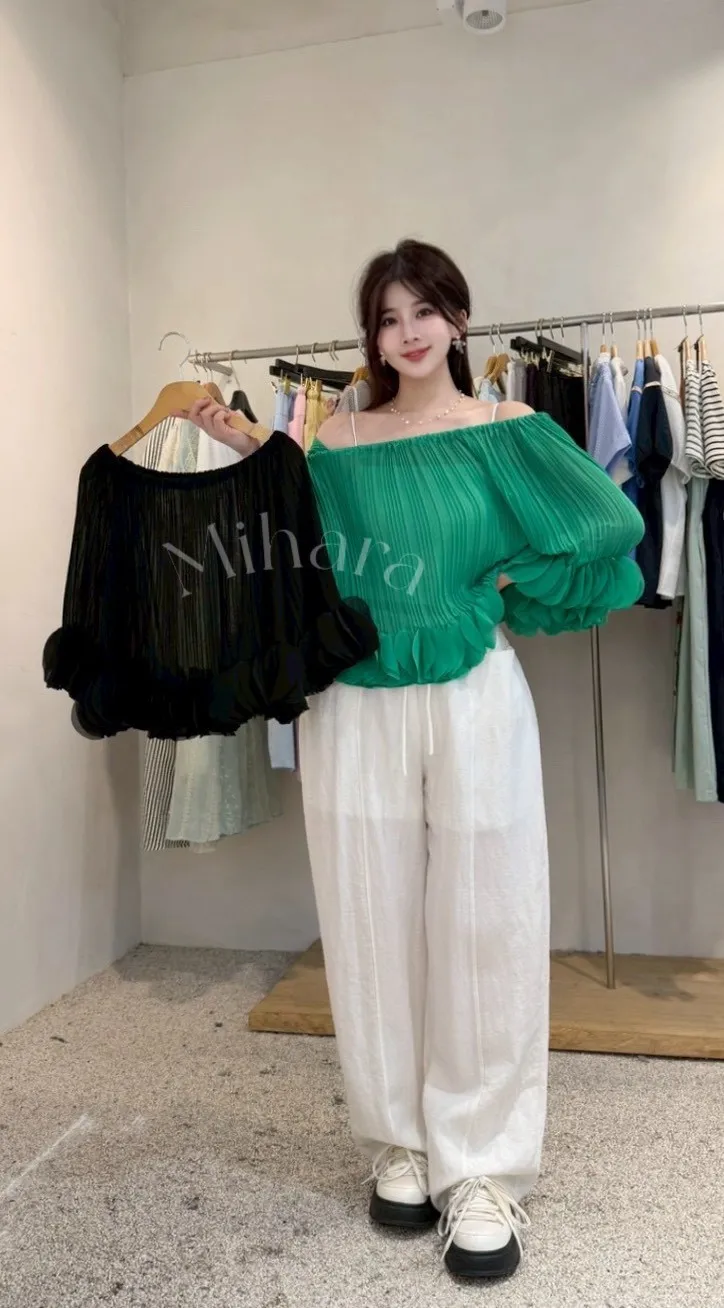 A22 0426浪漫新廠家細直紋圓領可拉一字上衣2色