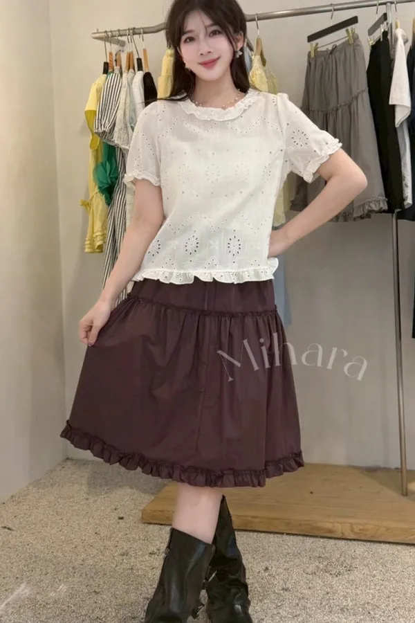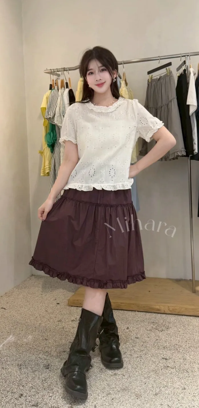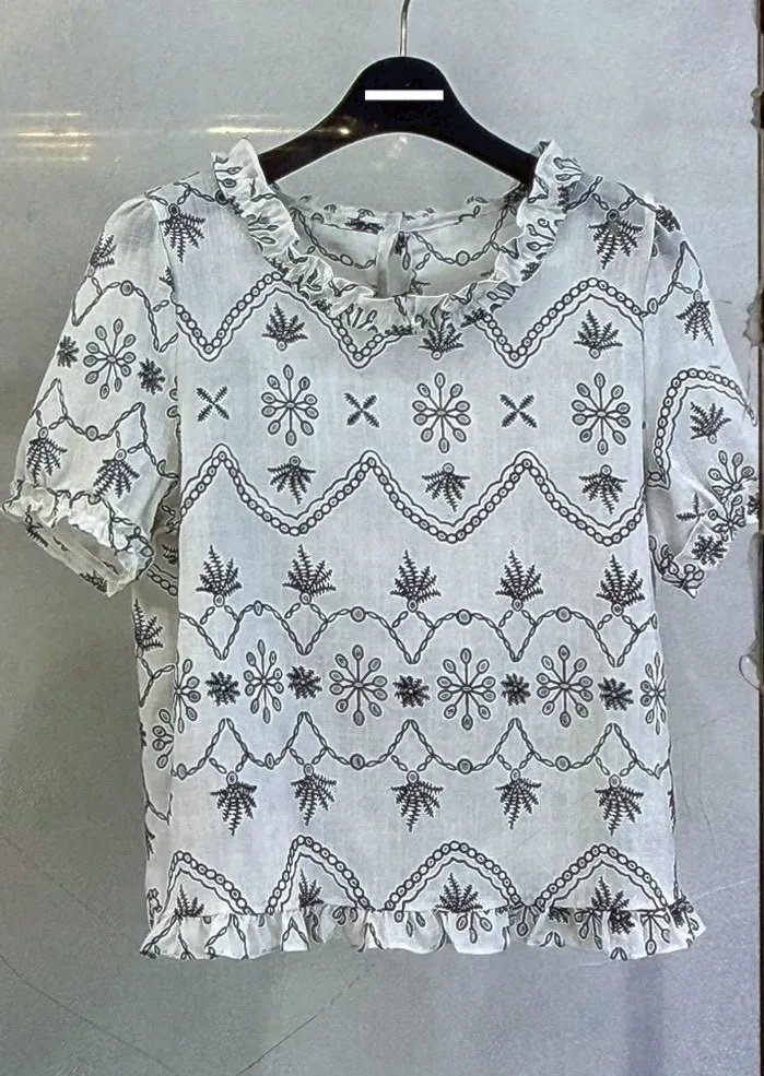 A31 0426浪漫新廠家簍空蕾絲刺繡圓領上衣2色