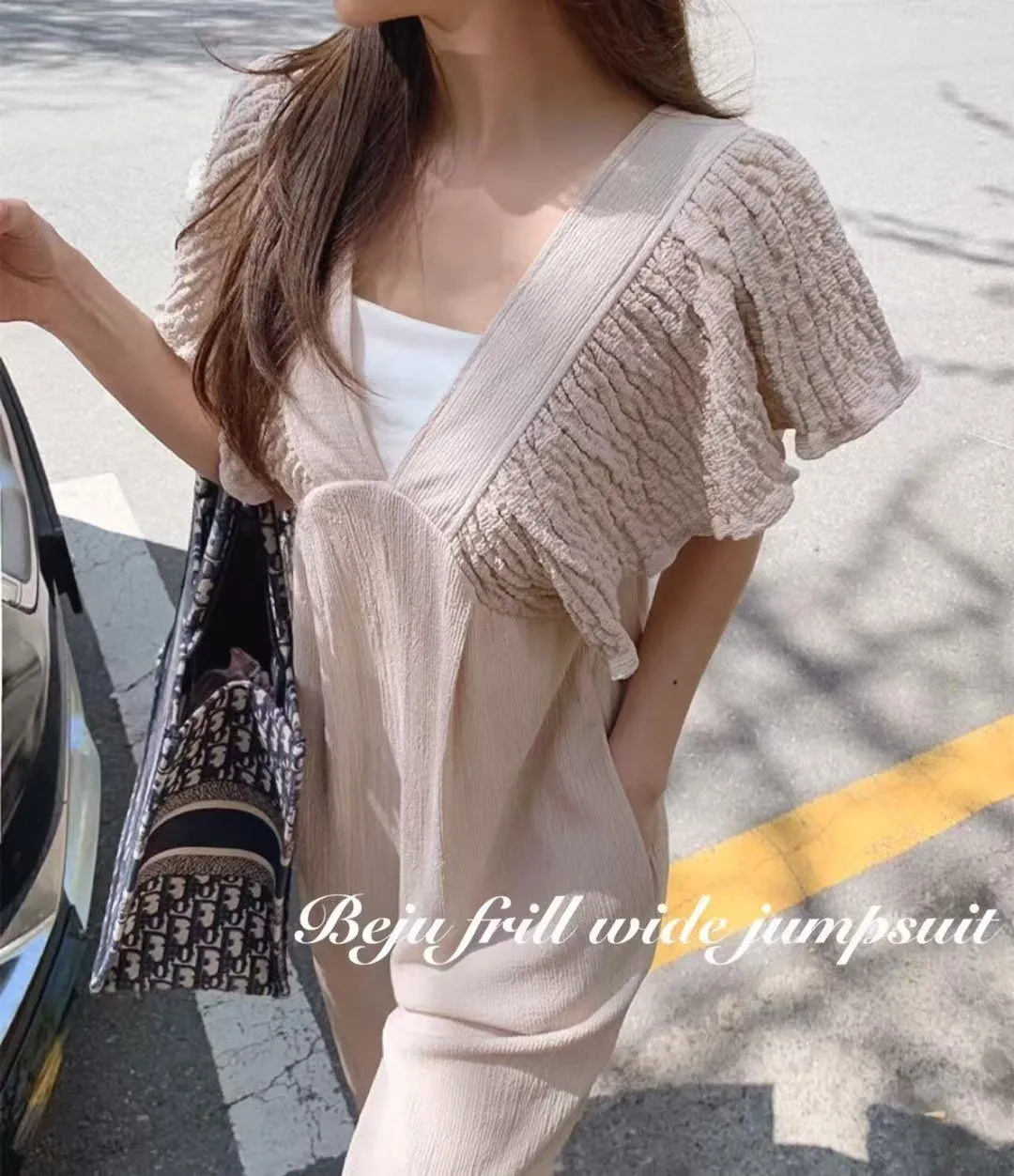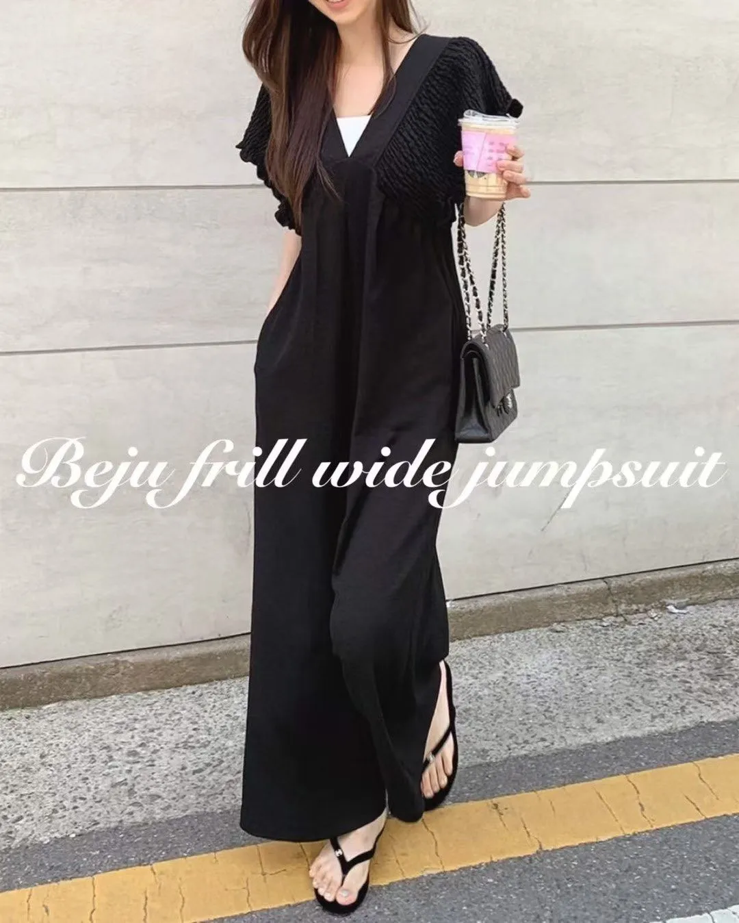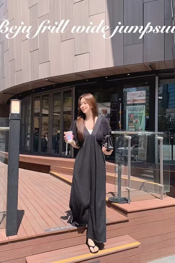 B56波西米亞V領後綁帶連身褲2色
