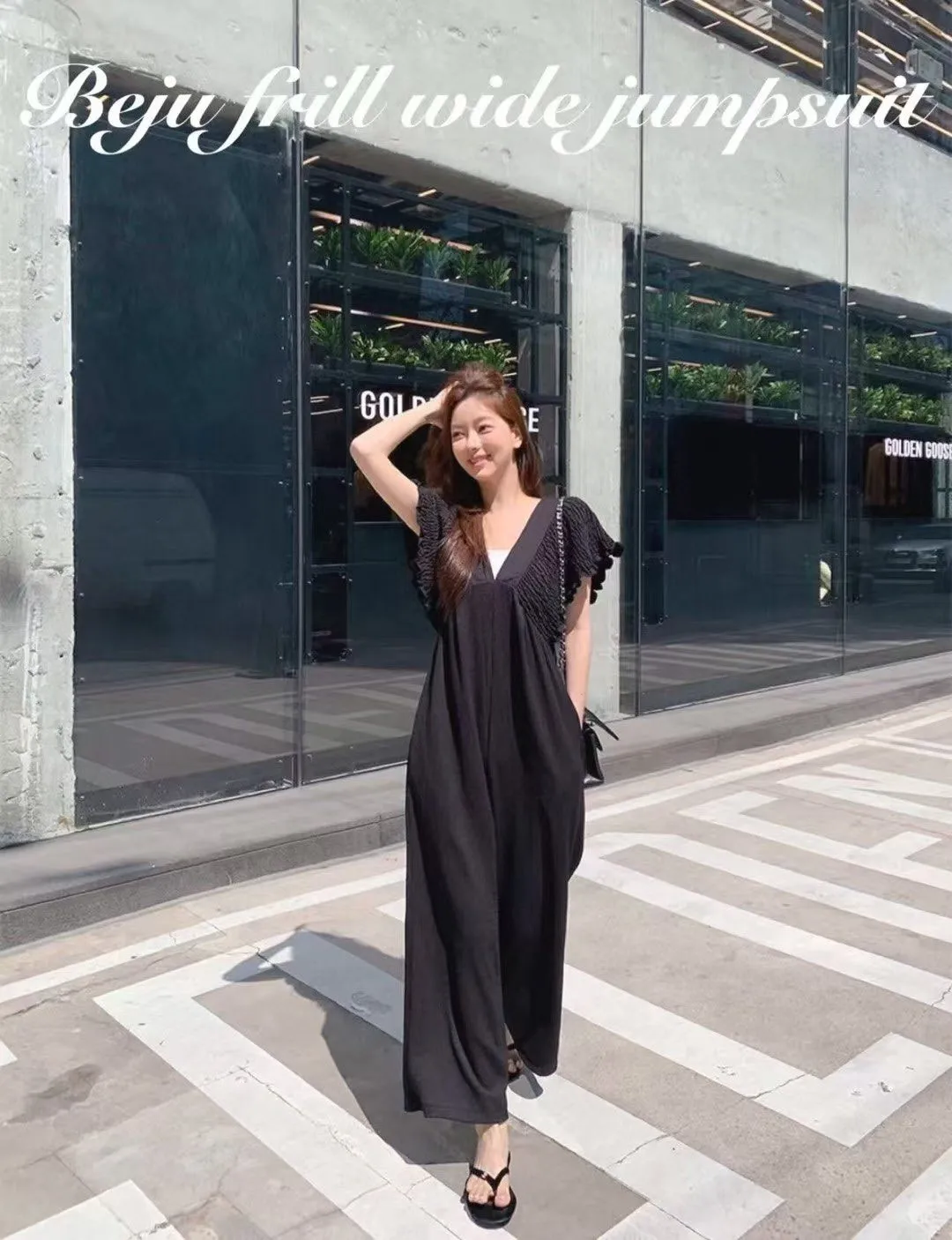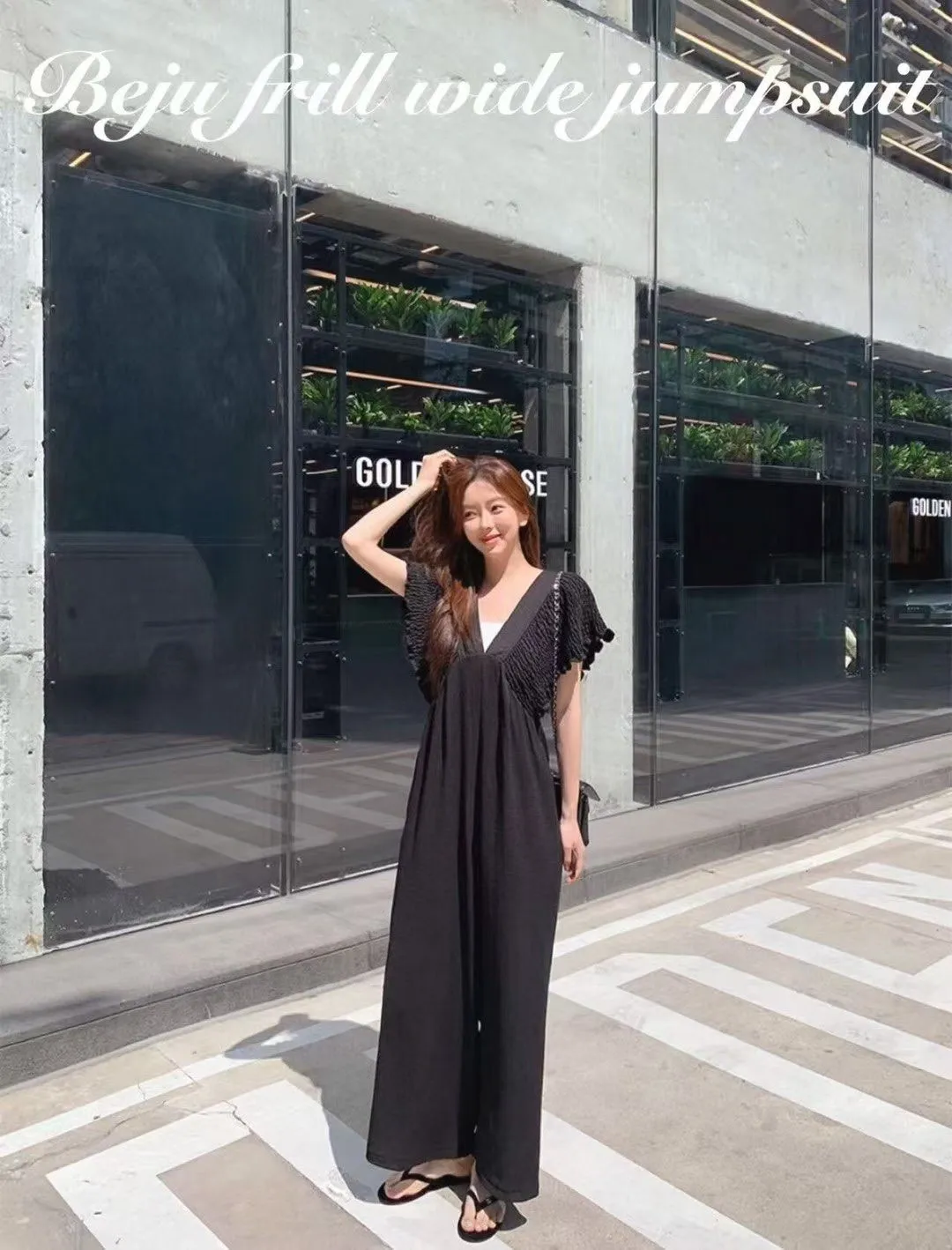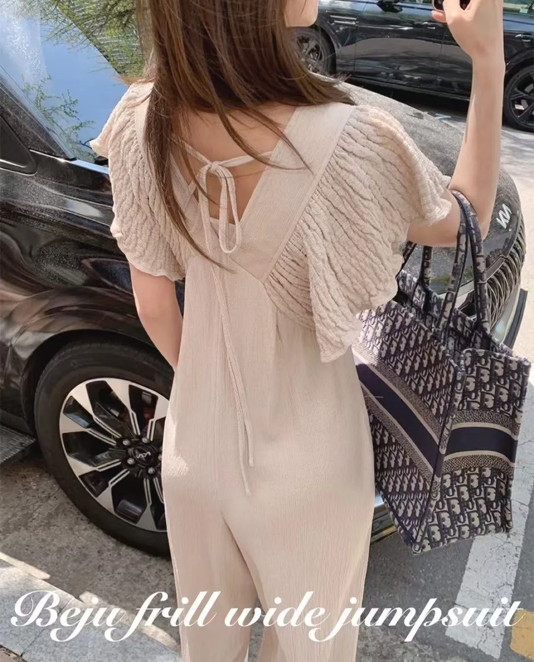 B56波西米亞V領後綁帶連身褲2色