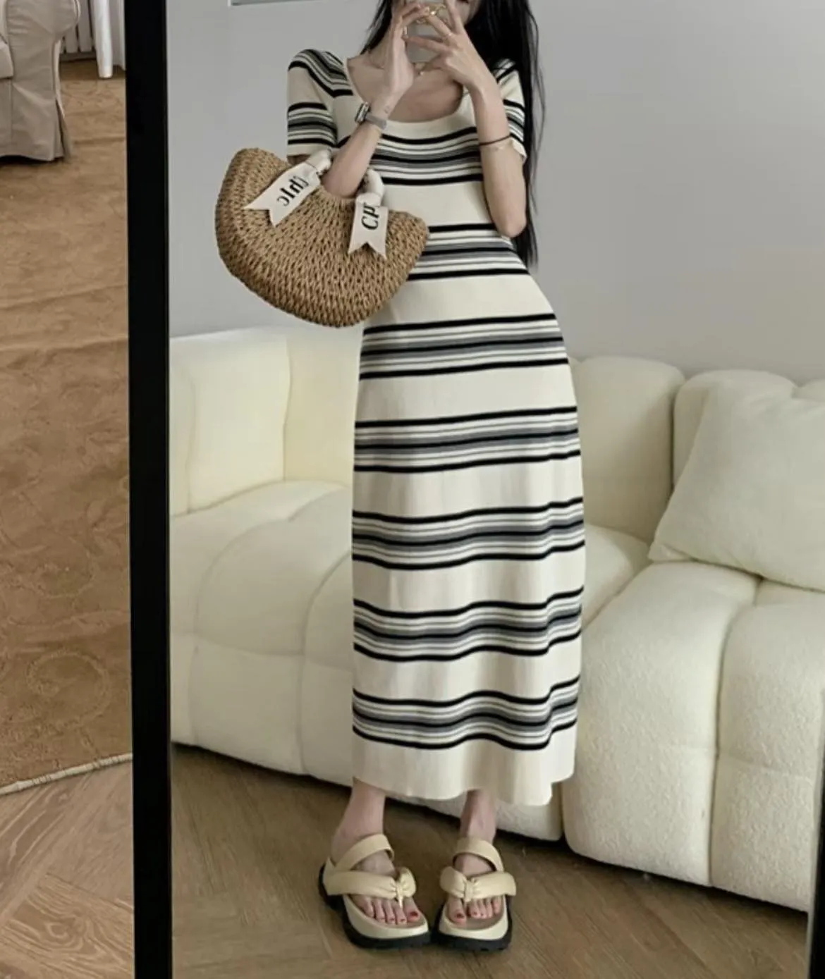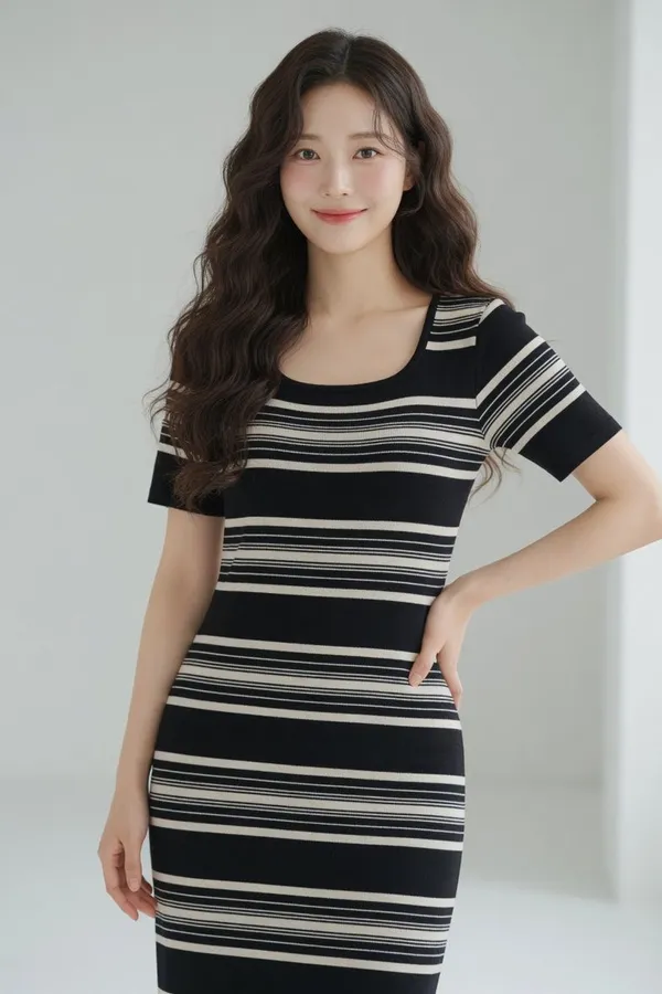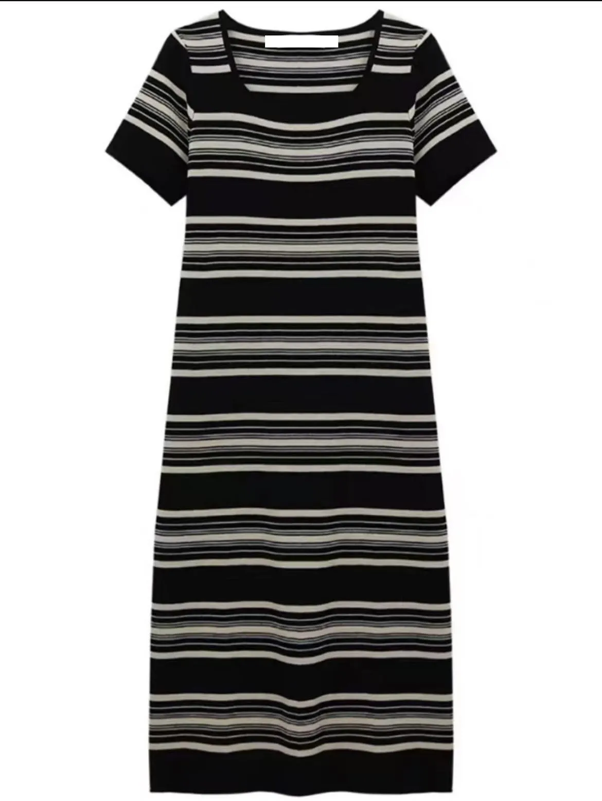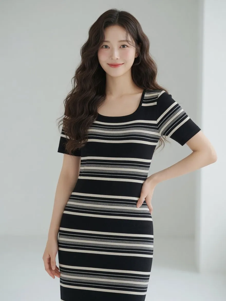 B832方領條紋針織洋裝2色