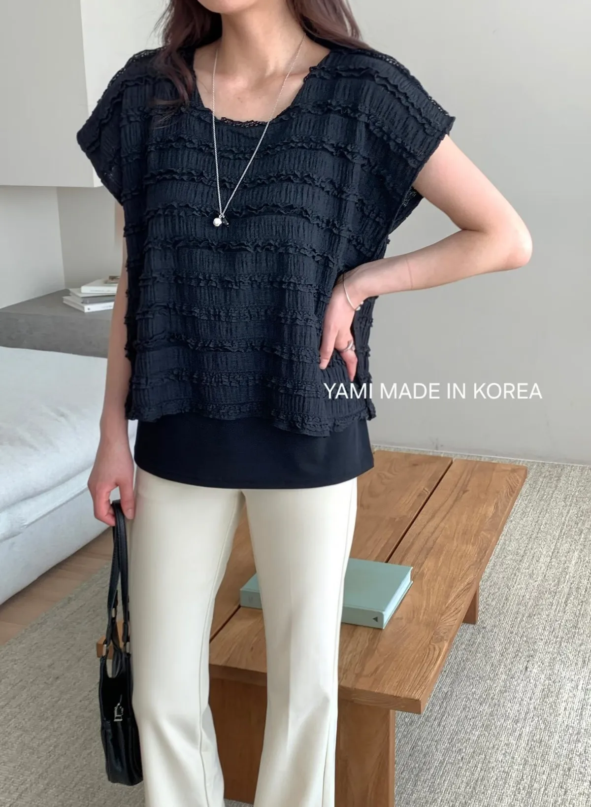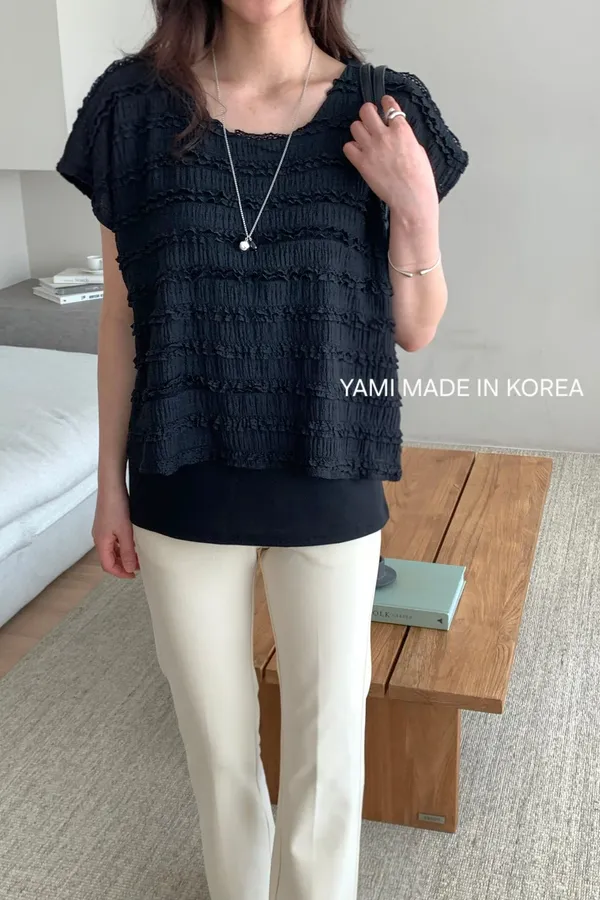 B96假兩件皺皺上衣2色